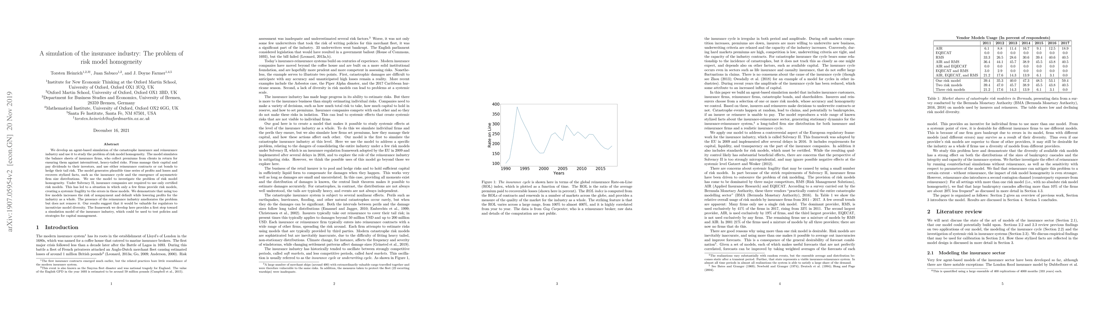 This paper develops an agent-based simulation of the catastrophe insurance and reinsurance industry to study risk model homogeneity, finding that limited model diversity increases systemic fragility and default risk. The study suggests regulators should incentivize model diversity to improve industry stability.