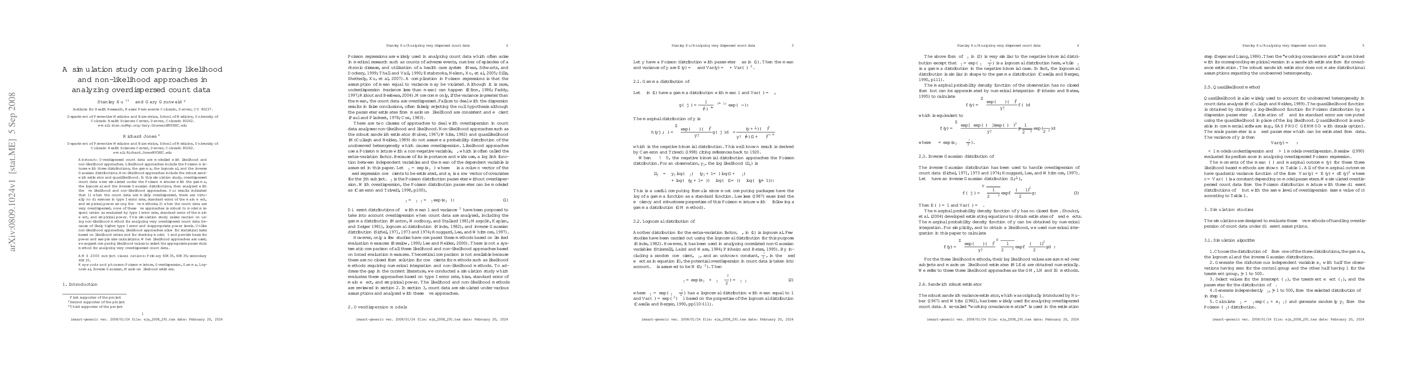 Overdispersed count data are modelled with likelihood and non-likelihood approaches. Likelihood approaches include the Poisson mixtures with three distributions, the gamma, the lognormal, and the inverse Gaussian distributions. Non-likelihood approaches include the robust sandwich estimator and quasilikelihood. In this simulation study, overdispersed count data were simulated under the Poisson mixtures with the gamma, the lognormal and the inverse Gaussian distributions, then analyzed with the five likelihood and non-likelihood approaches. Our results indicated that 1) when the count data are mildly overdispersed, there are virtually no differences in type I error rate, standard error of the main effect, and empirical power among the five methods; 2) when the count data are very overdispersed, none of these five approaches is robust to model misspecification as evaluated by type I error rate, standard error of the main effect, and empirical power. This simulation study raises caution on using non-likelihood method for analyzing very overdispered count data because of likely higher type I error and inappropriate power levels. Unlike non-likelihood approaches, likelihood approaches allow for statistical tests based on likelihood ratios and for checking model fit and provide basis for power and sample size calculations. When likelihood approaches are used, we suggest comparing likelihood values to select the appropriate parametric method for analyzing very overdispersed count data.