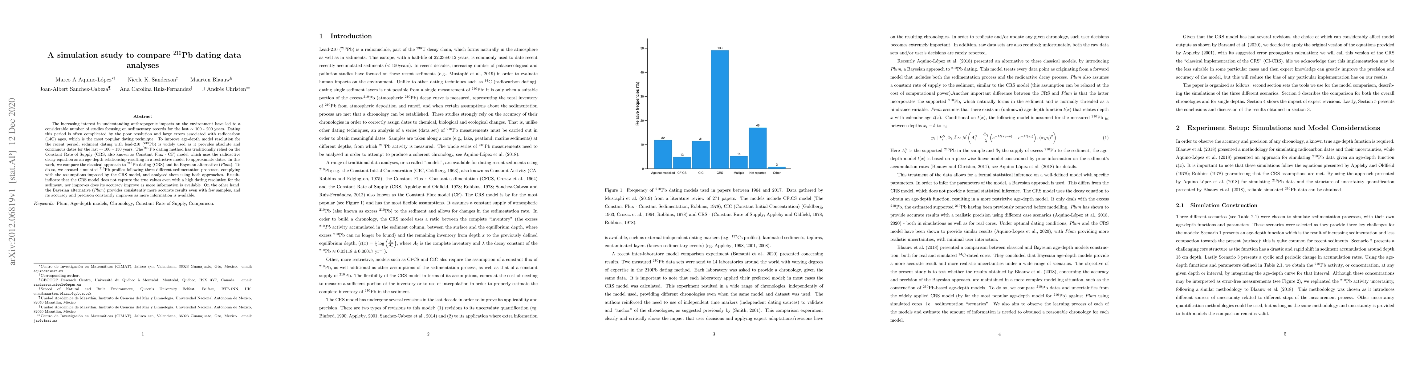 The increasing interest in understanding anthropogenic impacts on the environment have led to a considerable number of studies focusing on sedimentary records for the last $\sim$ 100 - 200 years. Dating this period is often complicated by the poor resolution and large errors associated with radiocarbon (14C) ages, which is the most popular dating technique. To improve age-depth model resolution for the recent period, sediment dating with lead-210 ($^{210}$Pb) is widely used as it provides absolute and continuous dates for the last $\sim$ 100 - 150 years. The $^{210}$Pb dating method has traditionally relied on the Constant Rate of Supply (CRS, also known as Constant Flux - CF) model which uses the radioactive decay equation as an age-depth relationship resulting in a restrictive model to approximate dates. In this work, we compare the classical approach to $^{210}$Pb dating (CRS) and its Bayesian alternative (\textit{Plum}). To do so, we created simulated $^{210}$Pb profiles following three different sedimentation processes, complying with the assumptions imposed by the CRS model, and analysed them using both approaches. Results indicate that the CRS model does not capture the true values even with a high dating resolution for the sediment, nor improves does its accuracy improve as more information is available. On the other hand, the Bayesian alternative (\textit{Plum}) provides consistently more accurate results even with few samples, and its accuracy and precision constantly improves as more information is available.