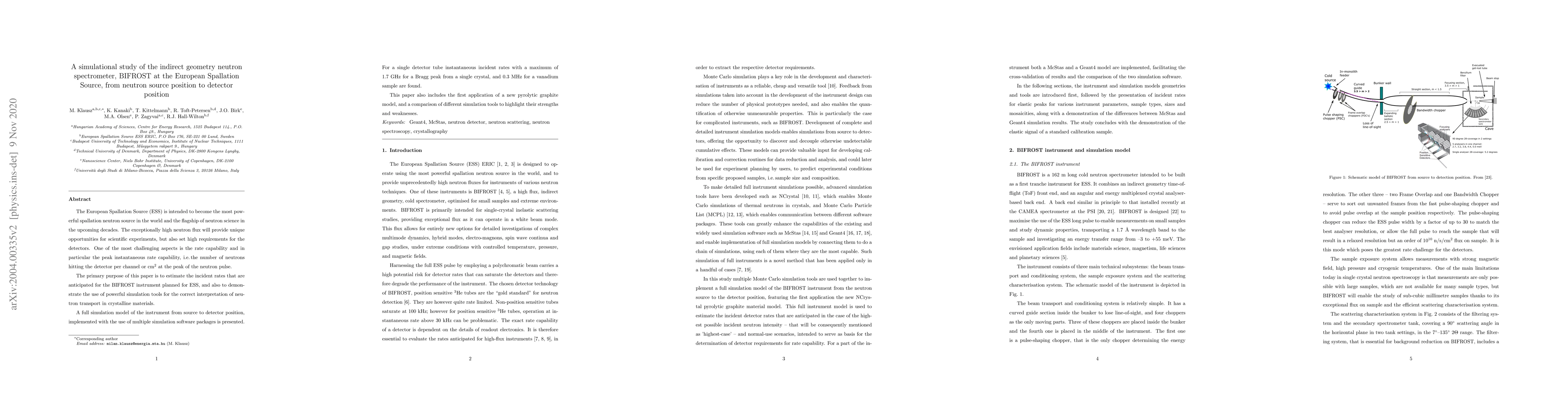 This paper simulates the neutron transport for the BIFROST instrument at the European Spallation Source, estimating peak instantaneous rates of 1.7 GHz for crystalline materials and 0.3 MHz for vanadium samples. It highlights the use of various simulation tools and introduces a new pyrolytic graphite model.