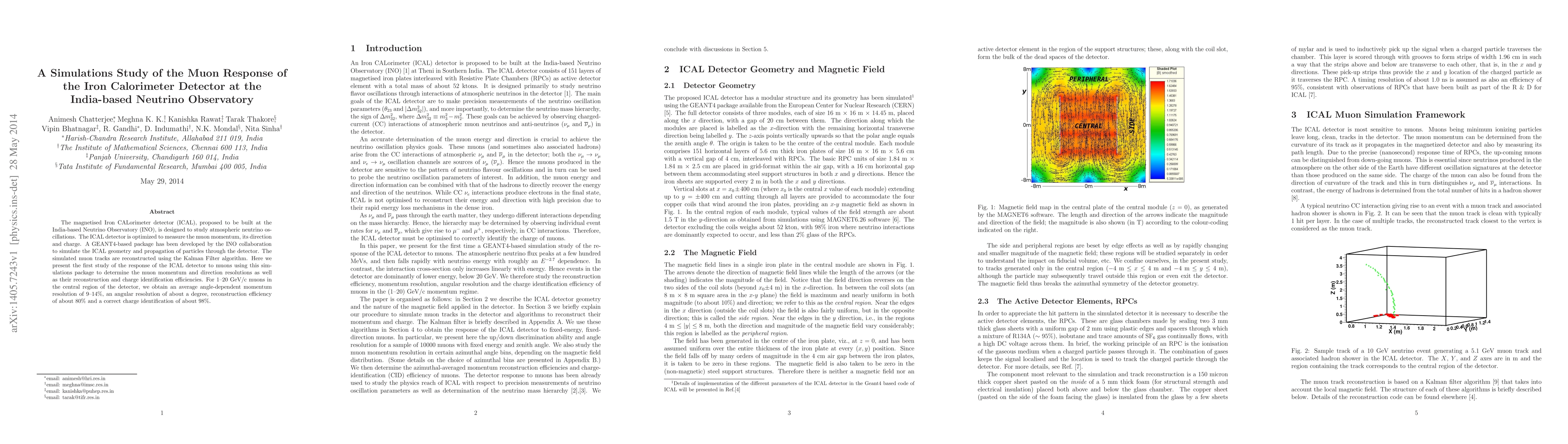 This study uses GEANT4 simulations to evaluate the muon response of the ICAL detector at the India-based Neutrino Observatory, finding an angle-dependent momentum resolution of 9-14% and an angular resolution of about a degree, with 80% reconstruction efficiency and 98% charge identification efficiency for 1-20 GeV/c muons.