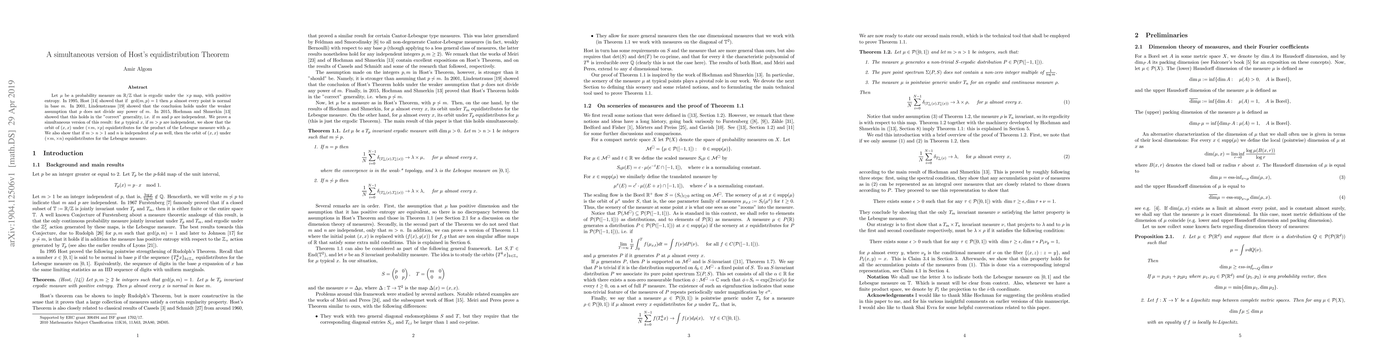 Let $\mu$ be a probability measure on $\mathbb{R}/\mathbb{Z}$ that is ergodic under the $\times p$ map, with positive entropy. In 1995, Host showed that if $\gcd(m,p)=1$ then $\mu$ almost every point is normal in base $m$. In 2001, Lindenstrauss showed that the conclusion holds under the weaker assumption that $p$ does not divide any power of $m$. In 2015, Hochman and Shmerkin showed that this holds in the "correct" generality, i.e. if $m$ and $p$ are independent. We prove a simultaneous version of this result: for $\mu$ typical $x$, if $m>p$ are independent, we show that the orbit of $(x,x)$ under $(\times m, \times p)$ equidistributes for the product of the Lebesgue measure with $\mu$. We also show that if $m>n>1$ and $n$ is independent of $p$ as well, then the orbit of $(x,x)$ under $(\times m, \times n)$ equidistributes for the Lebesgue measure.