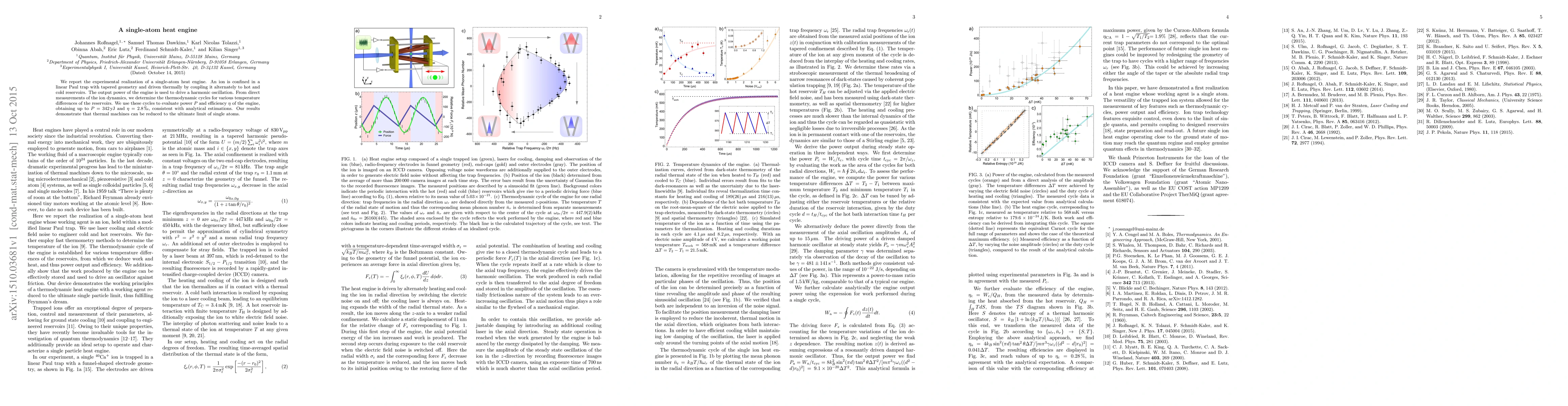 This paper reports the experimental realization of a single-atom heat engine using an ion in a Paul trap, driven by coupling to hot and cold reservoirs. The study measures the thermodynamic cycles, output power, and efficiency, achieving up to 342 yJ of power and 0.28% efficiency, demonstrating the feasibility of thermal machines at the atomic scale.