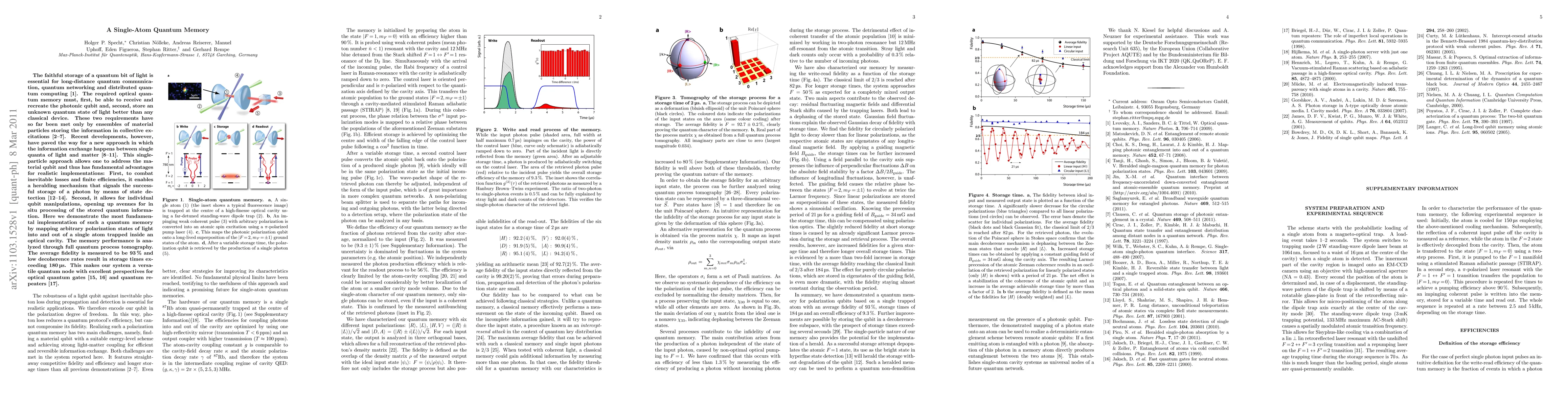 This paper demonstrates a single-atom quantum memory that stores photonic qubits with high fidelity, achieving an average storage fidelity of 93% and storage times over 180 microseconds. The approach uses a single atom in an optical cavity to map light polarization states, offering advantages like heralding mechanisms and individual qubit manipulations for quantum communication and networking.