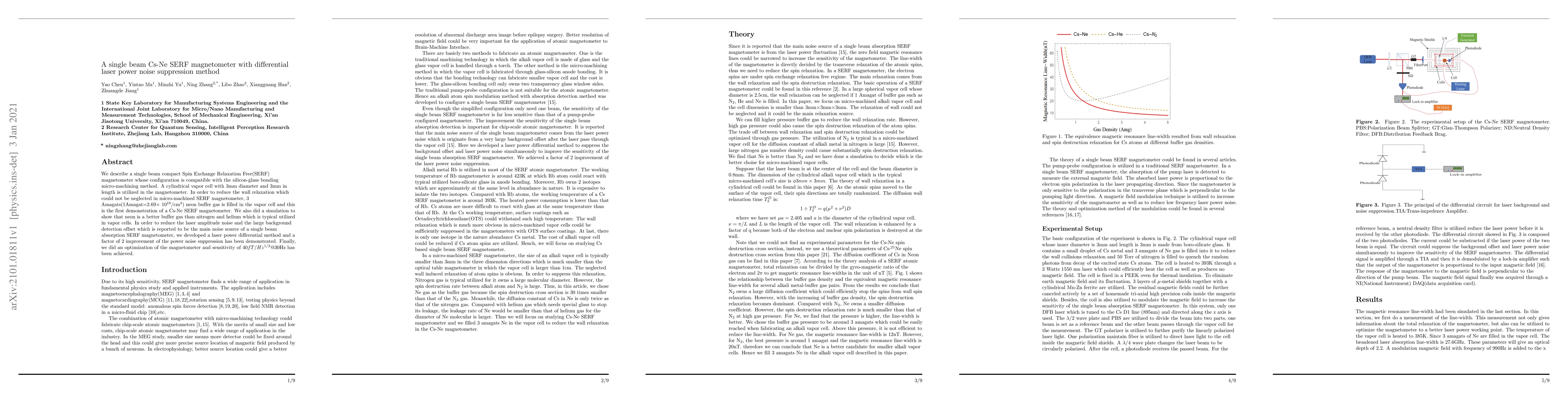 This paper presents a compact single beam Cs-Ne SERF magnetometer utilizing a micro-machined cylindrical vapor cell with neon buffer gas to reduce wall relaxation. A novel differential laser power noise suppression method was developed, achieving a factor of 2 improvement in noise reduction and a sensitivity of 40 fT/Hz^(1/2) at 30 Hz.