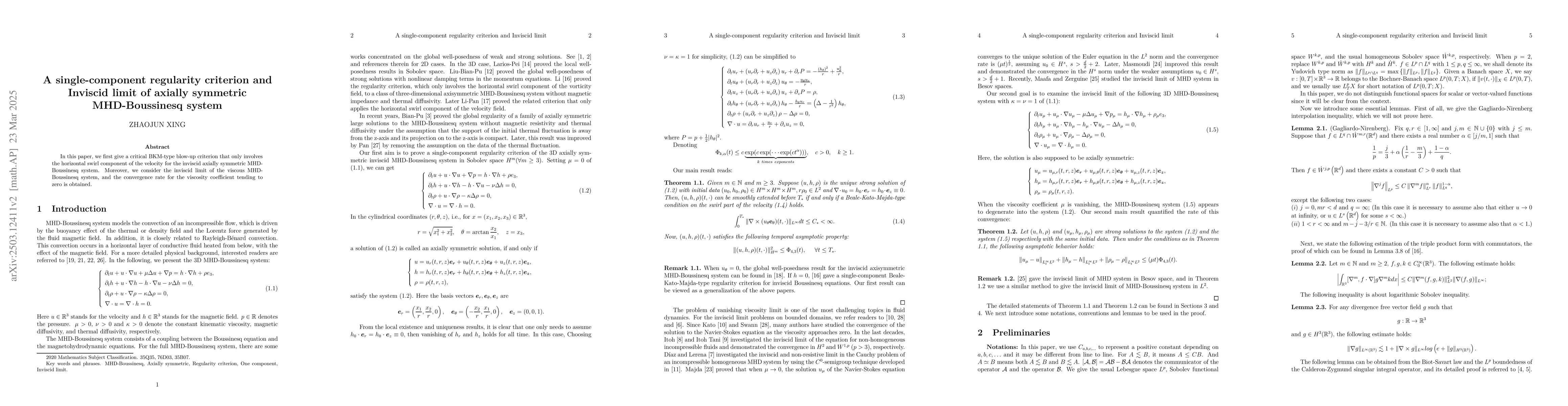 The research employs analysis of the axially symmetric MHD-Boussinesq system, focusing on its inviscid limit and deriving a regularity criterion.