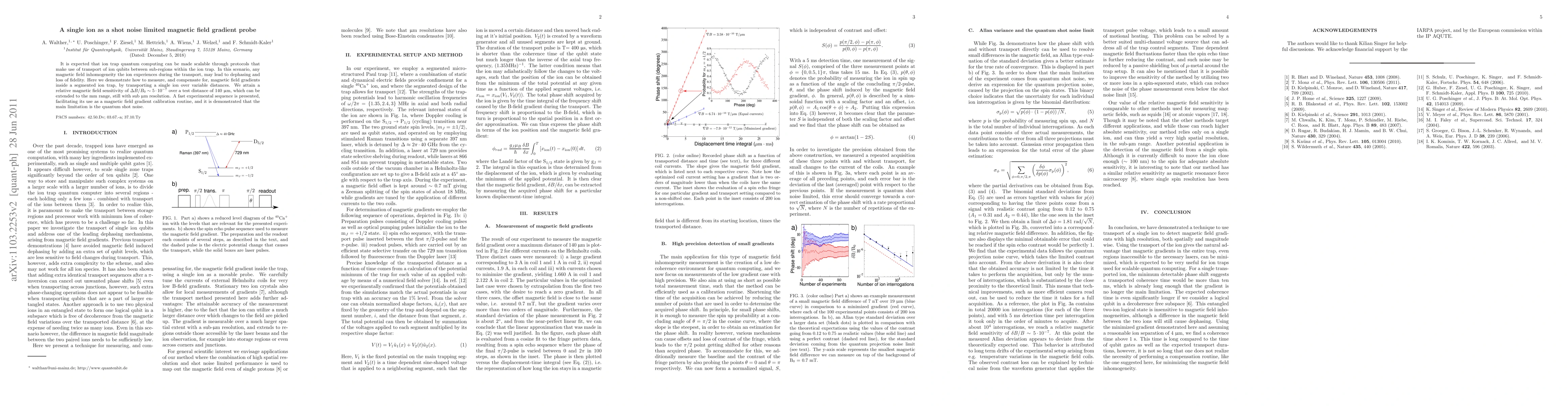 This paper demonstrates the use of a single ion to measure and compensate for magnetic field gradients within a segmented ion trap, achieving a high sensitivity of 5*10^{-7} over 140 μm, with potential for extension to the mm range. The main limitation identified is quantum shot noise, highlighting its utility as a calibration routine for ion trap quantum computing.