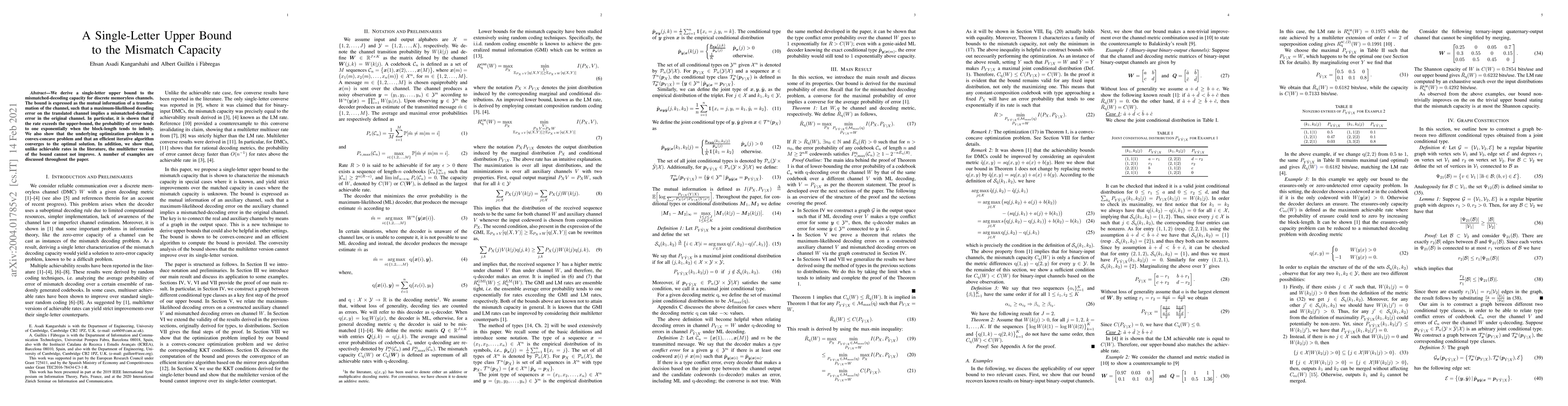 Researchers derive a single-letter upper bound for mismatched-decoding capacity in discrete memoryless channels, showing that rates exceeding the bound lead to exponentially high error probabilities as block length increases. The work provides an efficient algorithm for finding optimal rates.