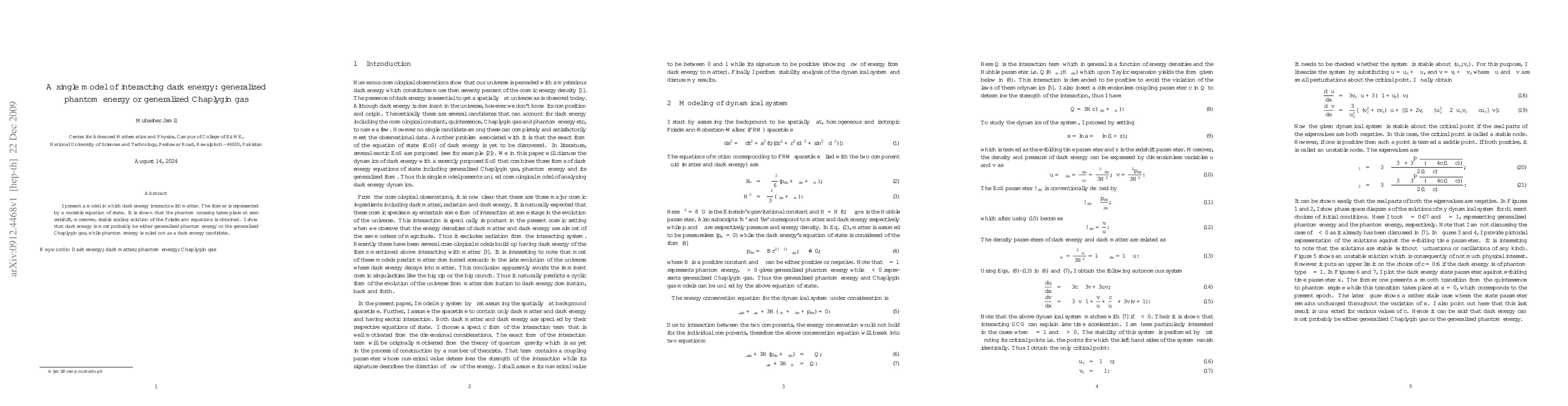 I present a model in which dark energy interacts with matter. The former is represented by a variable equation of state. It is shown that the phantom crossing takes place at zero redshift, moreover, stable scaling solution of the Friedmann equations is obtained. I show that dark energy is most probably be either generalized phantom energy or the generalized Chaplygin gas.