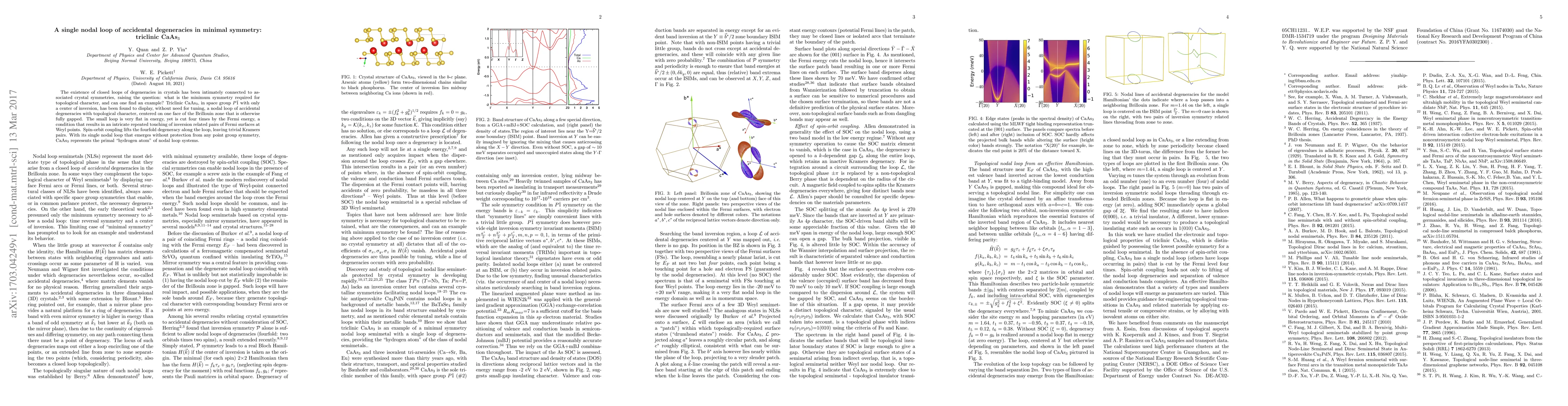 Triclinic CaAs$_3$ in space group $P{\bar 1}$ exhibits a single nodal loop of accidental degeneracies without requiring symmetry tuning, demonstrating topological character. This loop, though flat, intersects the Fermi energy multiple times, resulting in intricate Weyl point interactions.