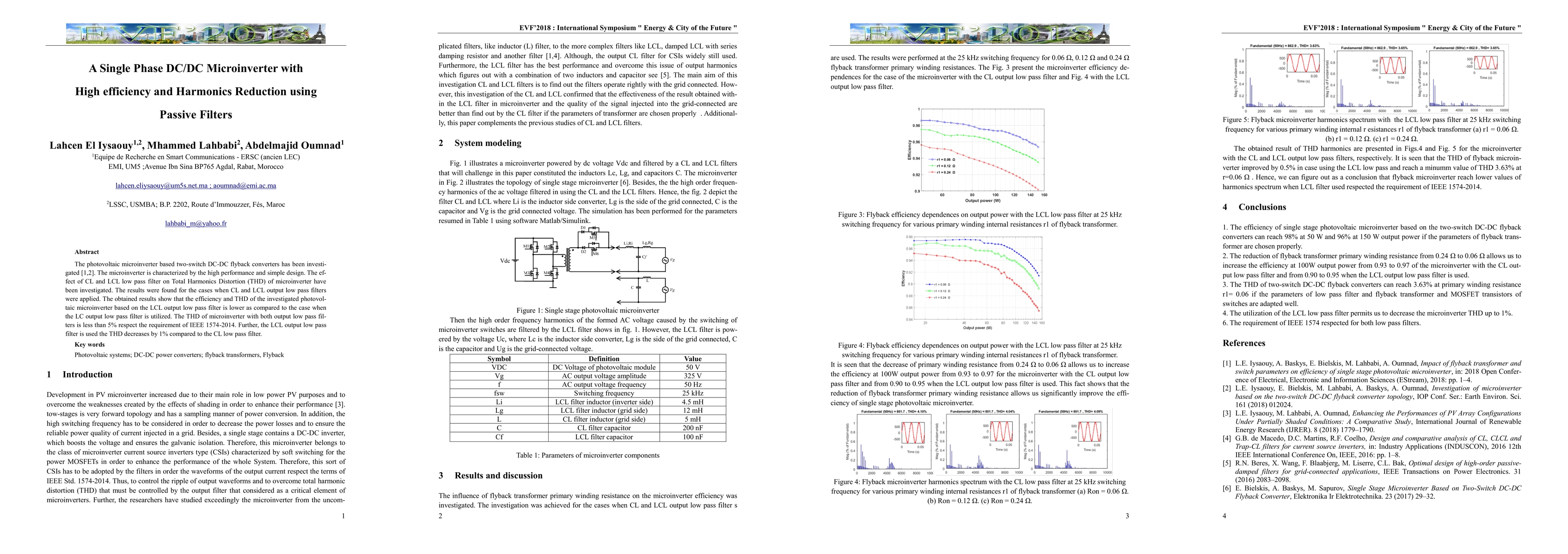 This paper investigates a two-switch DC-DC flyback microinverter for photovoltaic systems, focusing on efficiency and harmonic reduction using CL and LCL filters. Results show that the LCL filter achieves lower Total Harmonic Distortion (THD) and higher efficiency compared to the CL filter, both maintaining THD below 5% as per IEEE standards.