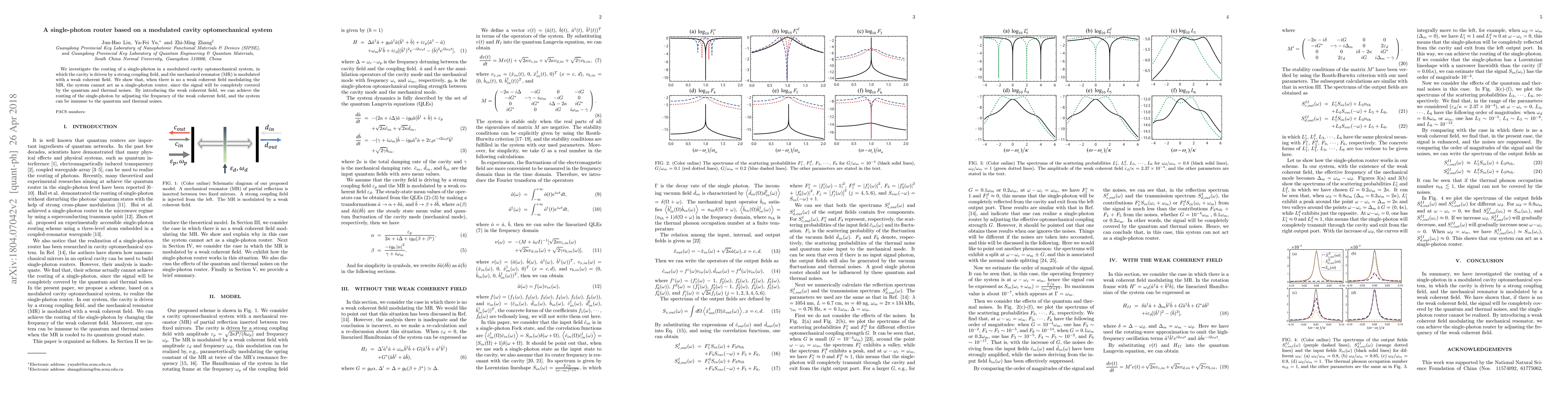 This paper explores a single-photon router using a modulated cavity optomechanical system, demonstrating that a weak coherent field modulating the mechanical resonator is essential for effective routing, overcoming quantum and thermal noise interference.