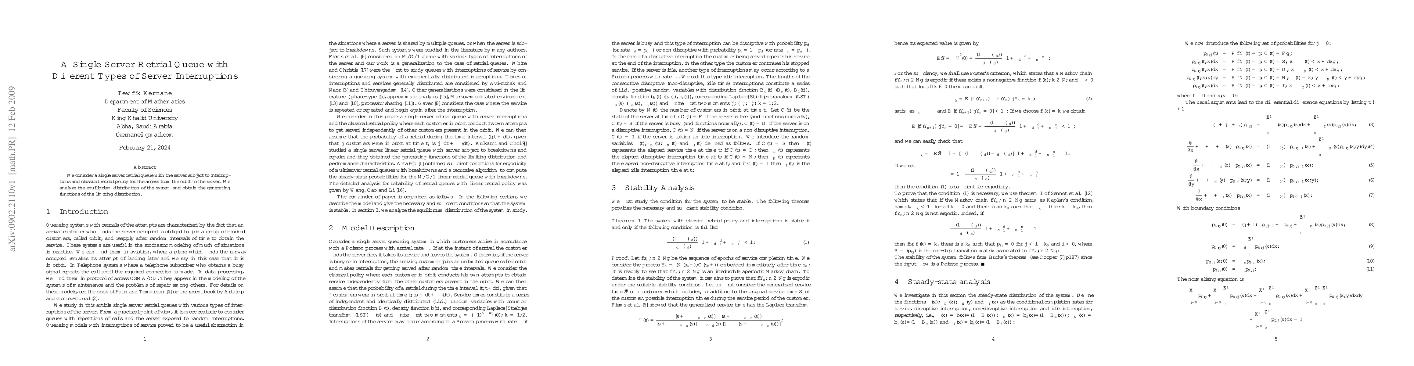 This paper studies a single server retrial queue where the server experiences interruptions, employing a classical retrial policy. The authors derive the generating functions for the equilibrium distribution of the system.