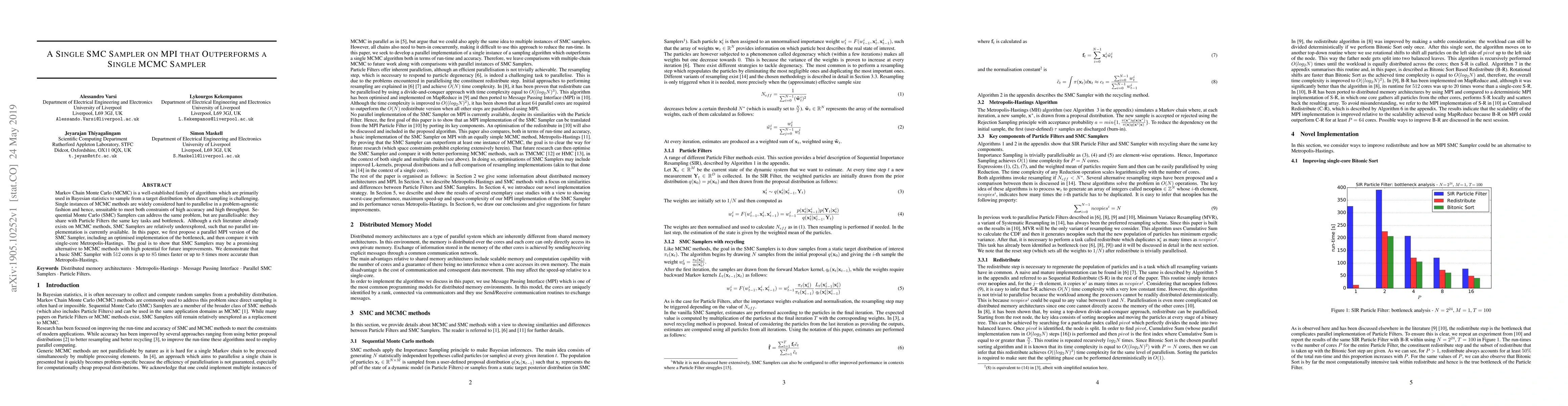 Markov Chain Monte Carlo (MCMC) is a well-established family of algorithms which are primarily used in Bayesian statistics to sample from a target distribution when direct sampling is challenging. Single instances of MCMC methods are widely considered hard to parallelise in a problem-agnostic fashion and hence, unsuitable to meet both constraints of high accuracy and high throughput. Sequential Monte Carlo (SMC) Samplers can address the same problem, but are parallelisable: they share with Particle Filters the same key tasks and bottleneck. Although a rich literature already exists on MCMC methods, SMC Samplers are relatively underexplored, such that no parallel implementation is currently available. In this paper, we first propose a parallel MPI version of the SMC Sampler, including an optimised implementation of the bottleneck, and then compare it with single-core Metropolis-Hastings. The goal is to show that SMC Samplers may be a promising alternative to MCMC methods with high potential for future improvements. We demonstrate that a basic SMC Sampler with 512 cores is up to 85 times faster or up to 8 times more accurate than Metropolis-Hastings.