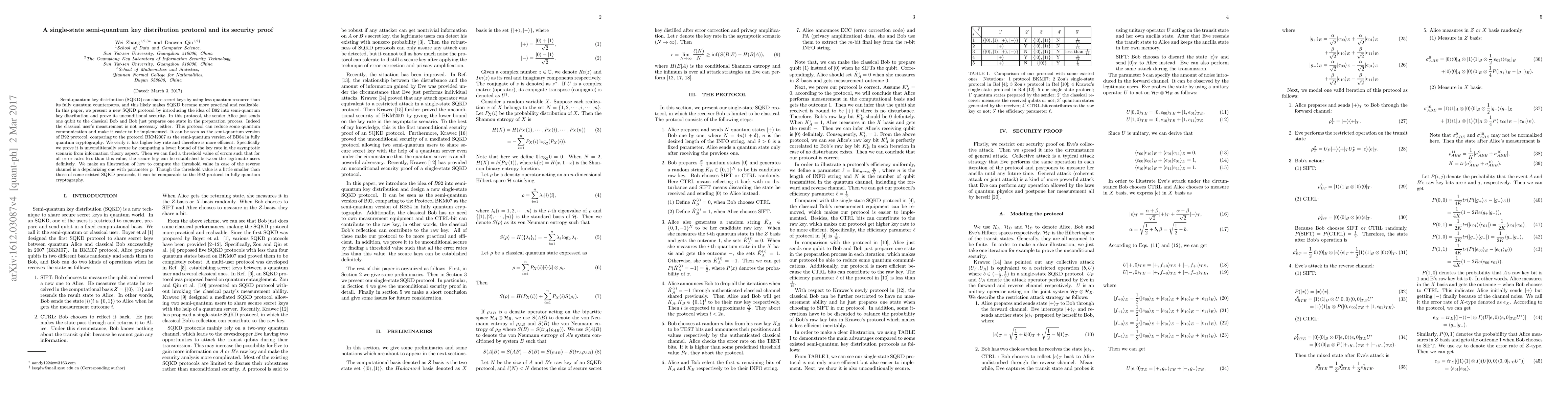 This paper introduces a new single-state semi-quantum key distribution protocol that leverages the B92 concept, requiring minimal quantum resources and classical communication. The protocol is proven to be unconditionally secure, with a higher key rate and efficiency compared to existing semi-quantum protocols, demonstrating a practical approach to quantum key distribution.