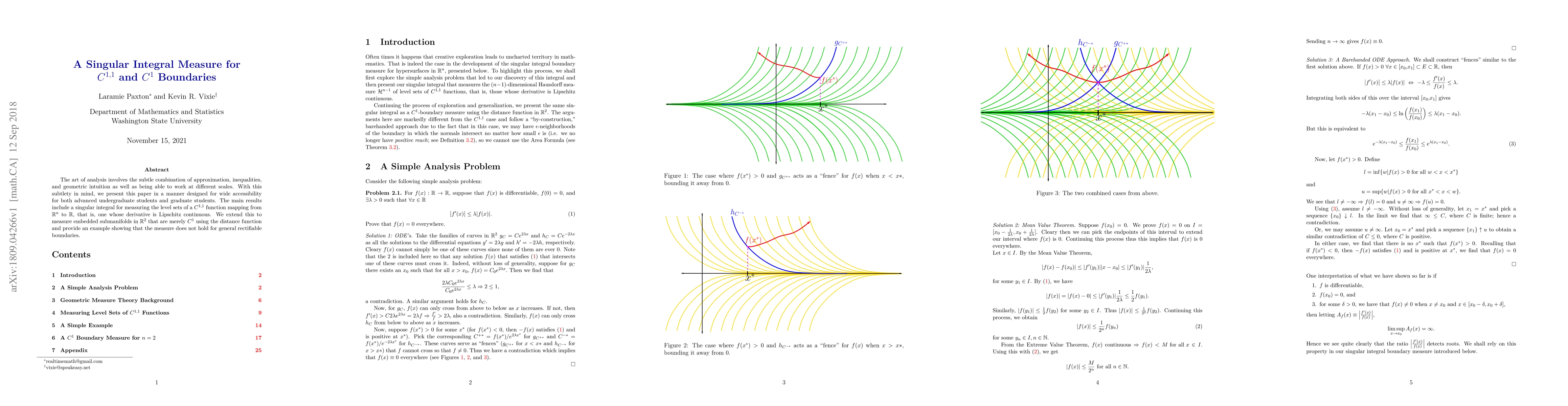 The art of analysis involves the subtle combination of approximation, inequalities, and geometric intuition as well as being able to work at different scales. With this subtlety in mind, we present this paper in a manner designed for wide accessibility for both advanced undergraduate students and graduate students. The main results include a singular integral for measuring the level sets of a $C^{1,1}$ function mapping from $\mathbb{R}^n$ to $\mathbb{R}$, that is, one whose derivative is Lipschitz continuous. We extend this to measure embedded submanifolds in $\mathbb{R}^2$ that are merely $C^1$ using the distance function and provide an example showing that the measure does not hold for general rectifiable boundaries.