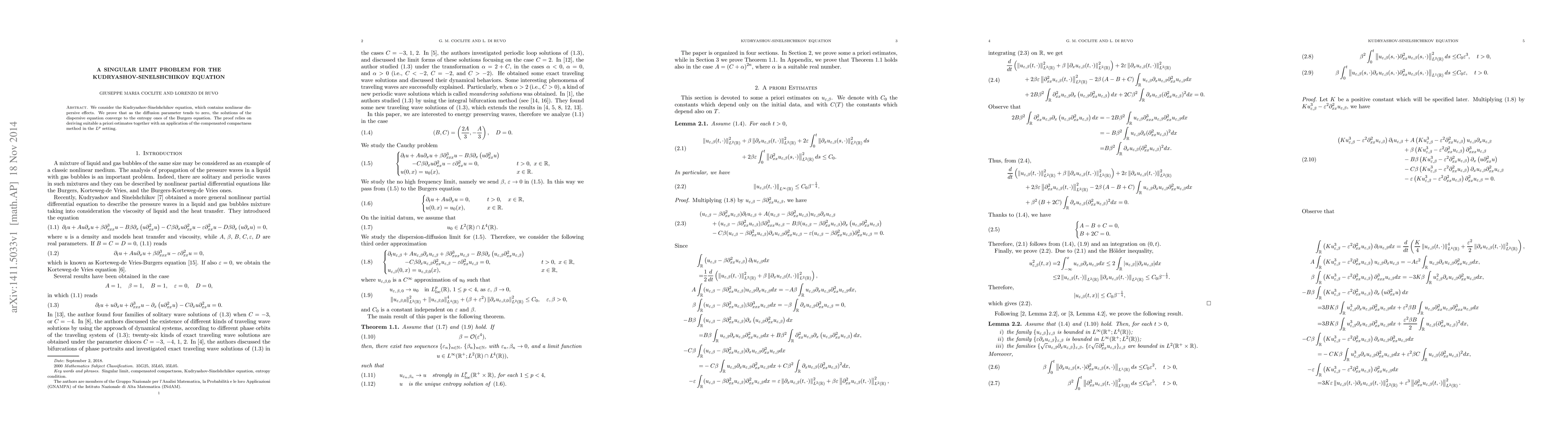 We consider the Kudryashov-Sinelshchikov equation, which contains nonlinear dispersive effects. We prove that as the diffusion parameter tends to zero, the solutions of the dispersive equation coverge to the entropy ones of the Burgers equation. The proof relies on deriving suitable a priori estimates together with an application of the compansated compactness method in the L^p setting.