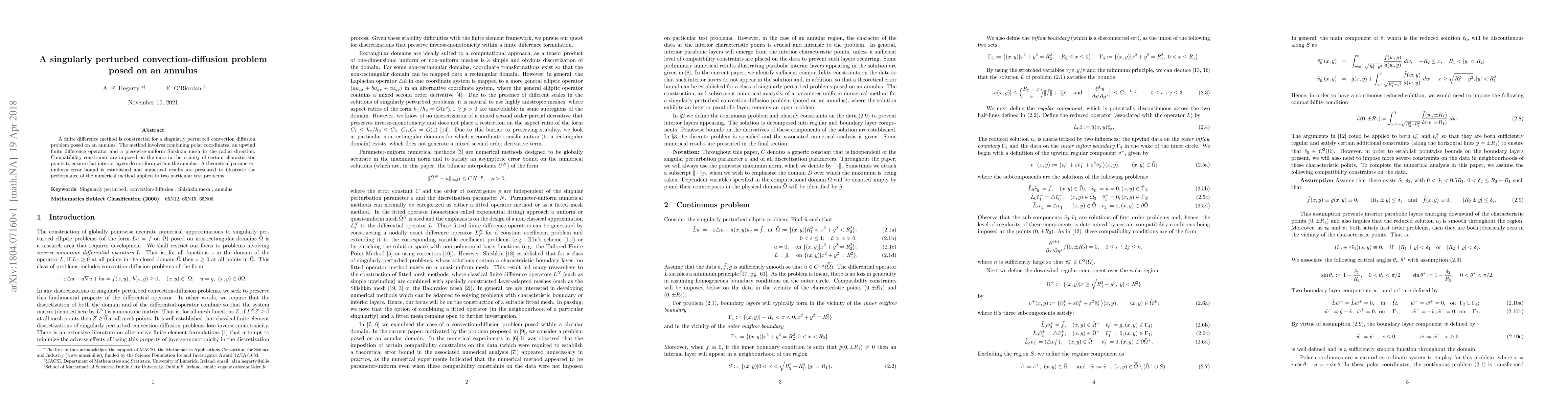This paper presents a finite difference method for solving a singularly perturbed convection-diffusion problem on an annulus, utilizing polar coordinates and a Shishkin mesh to avoid interior layers. Theoretical error bounds and numerical results demonstrate the method's effectiveness.