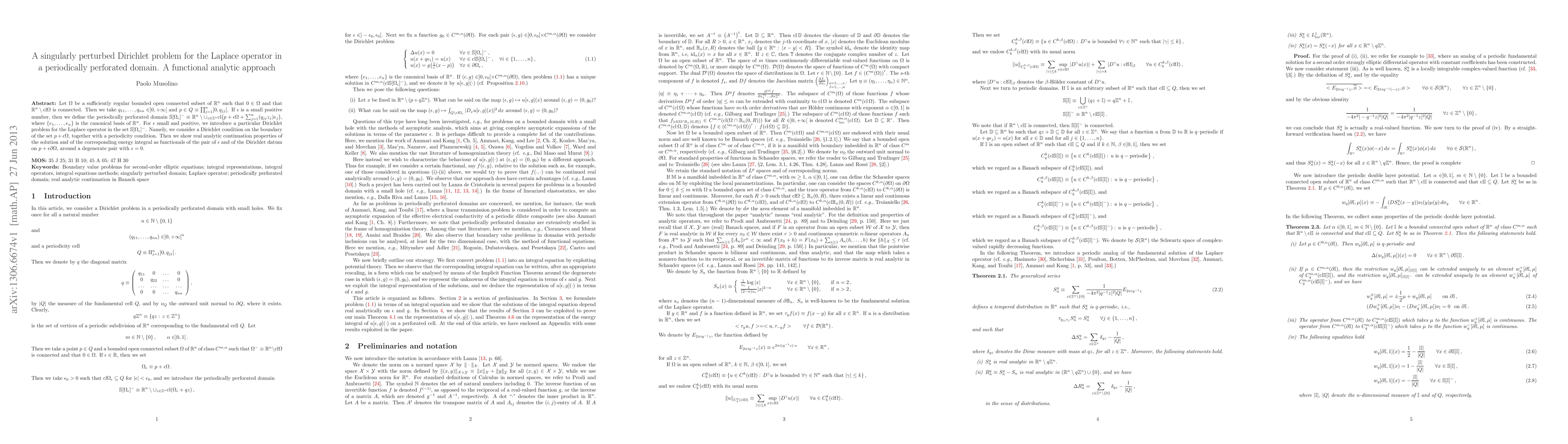 This paper investigates a singularly perturbed Dirichlet problem for the Laplace operator in a periodically perforated domain using a functional analytic approach. It demonstrates the real analytic continuation properties of the solution and the corresponding energy integral as functions of the perturbation parameter and the Dirichlet boundary condition, around the degenerate case where the perturbation parameter is zero.