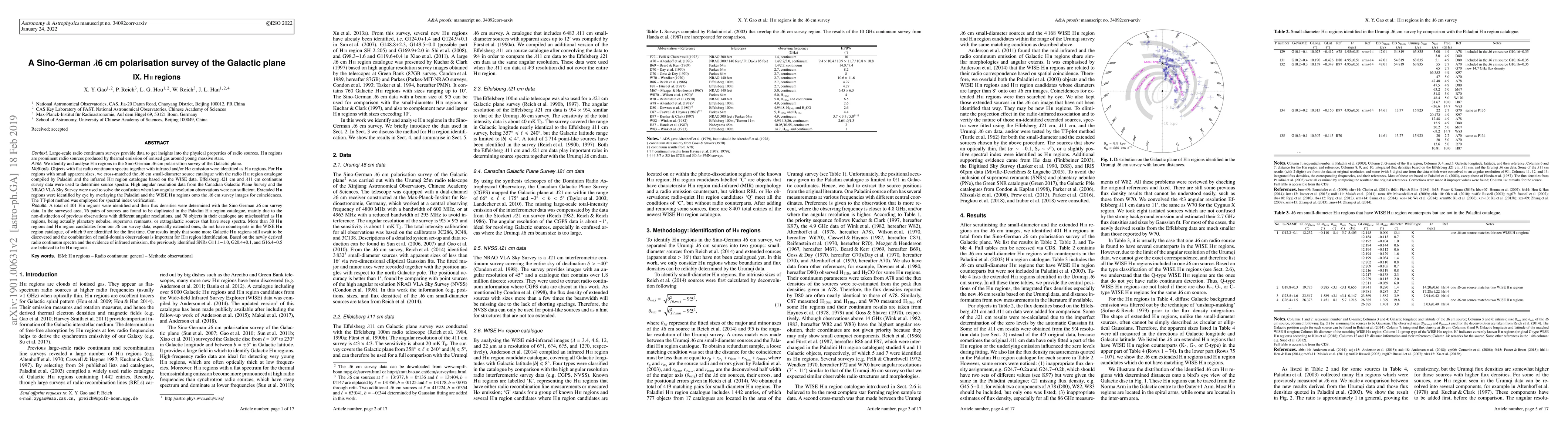 Large-scale radio continuum surveys provide data to get insights into the physical properties of radio sources. HII regions are prominent radio sources produced by thermal emission of ionised gas around young massive stars. We identify and analyse HII regions in the Sino-German 6cm polarisation survey of the Galactic plane. Objects with flat radio continuum spectra together with infrared and/or Halpha emission were identified as HII regions. For HII regions with small apparent sizes, we cross-matched the 6cm small-diameter source catalogue with the radio HII region catalogue compiled by Paladini and the infrared HII region catalogue based on the WISE data. Extended HII regions were identified by eye by overlaying the Paladini and the WISE HII regions onto the 6cm survey images for coincidences. The TT-plot method was employed for spectral index verification. A total of 401 HII regions were identified and their flux densities were determined with the Sino-German 6cm survey data. In the surveyed area, 76 pairs of sources are found to be duplicated in the Paladini HII region catalogue, mainly due to the non-distinction of previous observations with different angular resolutions, and 78 objects in their catalogue are misclassified as HII regions, being actually planetary nebulae, supernova remnants or extragalactic sources that have steep spectra. More than 30 HII regions and HII region candidates from our 6cm survey data, especially extended ones, do not have counterparts in the WISE HII region catalogue, of which 9 are identified for the first time. Based on the newly derived radio continuum spectra and the evidence of infrared emission, the previously identified SNRs G11.1-1.0, G20.4+0.1 and G16.4-0.5 are believed to be HII regions.