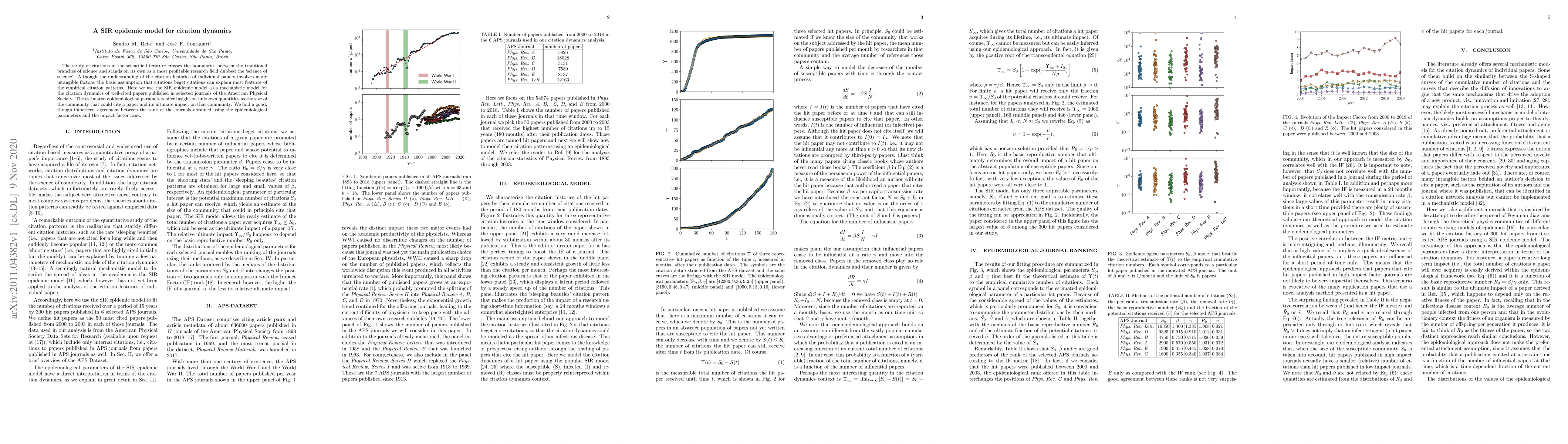 The study of citations in the scientific literature crosses the boundaries between the traditional branches of science and stands on its own as a most profitable research field dubbed the `science of science'. Although the understanding of the citation histories of individual papers involves many intangible factors, the basic assumption that citations beget citations can explain most features of the empirical citation patterns. Here we use the SIR epidemic model as a mechanistic model for the citation dynamics of well-cited papers published in selected journals of the American Physical Society. The estimated epidemiological parameters offer insight on unknown quantities as the size of the community that could cite a paper and its ultimate impact on that community. We find a good, though imperfect, agreement between the rank of the journals obtained using the epidemiological parameters and the impact factor rank.