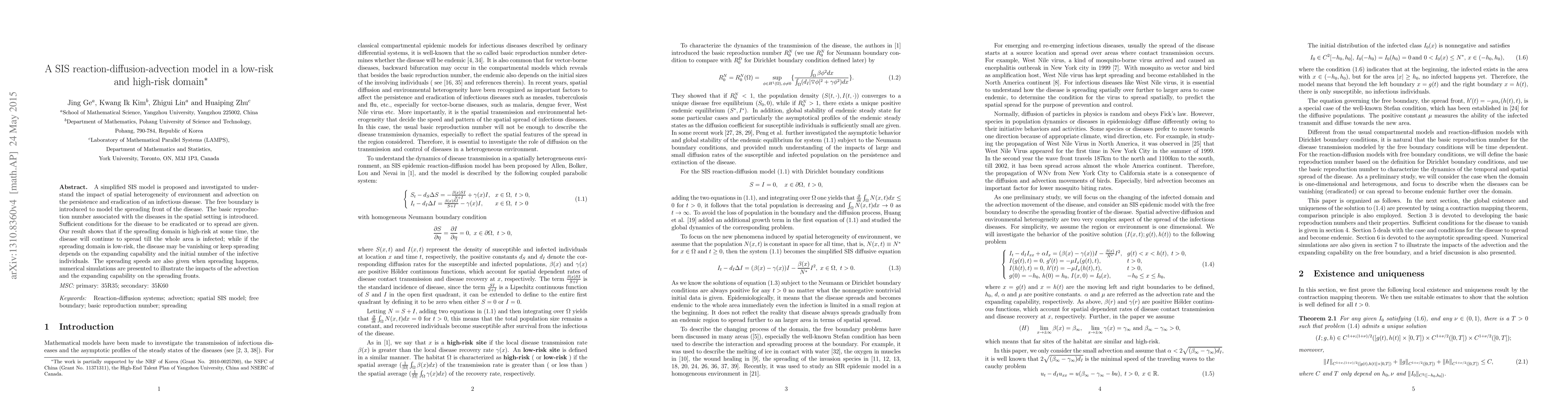 This paper proposes a SIS reaction-diffusion-advection model to study the impact of spatial heterogeneity and advection on disease spread. It introduces a free boundary to model contact transmission at the disease front and finds that fast diffusion and small expanding rates help control disease spread.