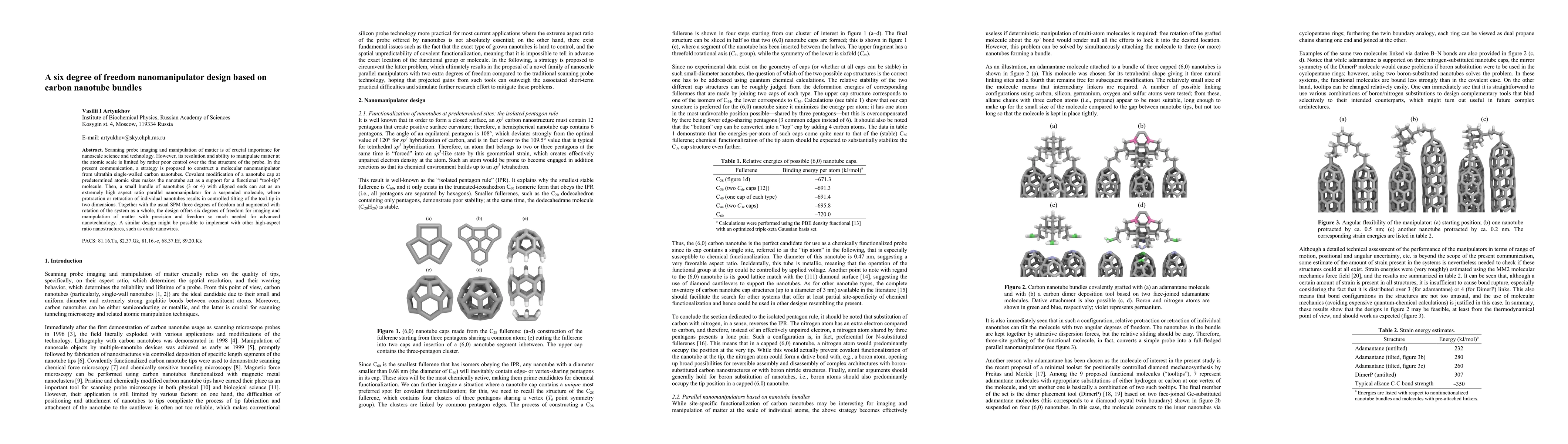 Scanning probe imaging and manipulation of matter is of crucial importance for nanoscale science and technology. However, its resolution and ability to manipulate matter at the atomic scale is limited by rather poor control over the fine structure of the probe. In the present communication, a strategy is proposed to construct a molecular nanomanipulator from ultrathin single-walled carbon nanotubes. Covalent modification of a nanotube cap at predetermined atomic sites makes the nanotube act as a support for a functional "tool-tip" molecule. Then, a small bundle of nanotubes (3 or 4) with aligned ends can act as an extremely high aspect ratio parallel nanomanipulator for a suspended molecule, where protraction or retraction of individual nanotubes results in controlled tilting of the tool-tip in two dimensions. Together with the usual SPM three degrees of freedom and augmented with rotation of the system as a whole, the design offers six degrees of freedom for imaging and manipulation of matter with precision and freedom so much needed for advanced nanotechnology. A similar design might be possible to implement with other high-aspect ratio nanostructures, such as oxide nanowires.