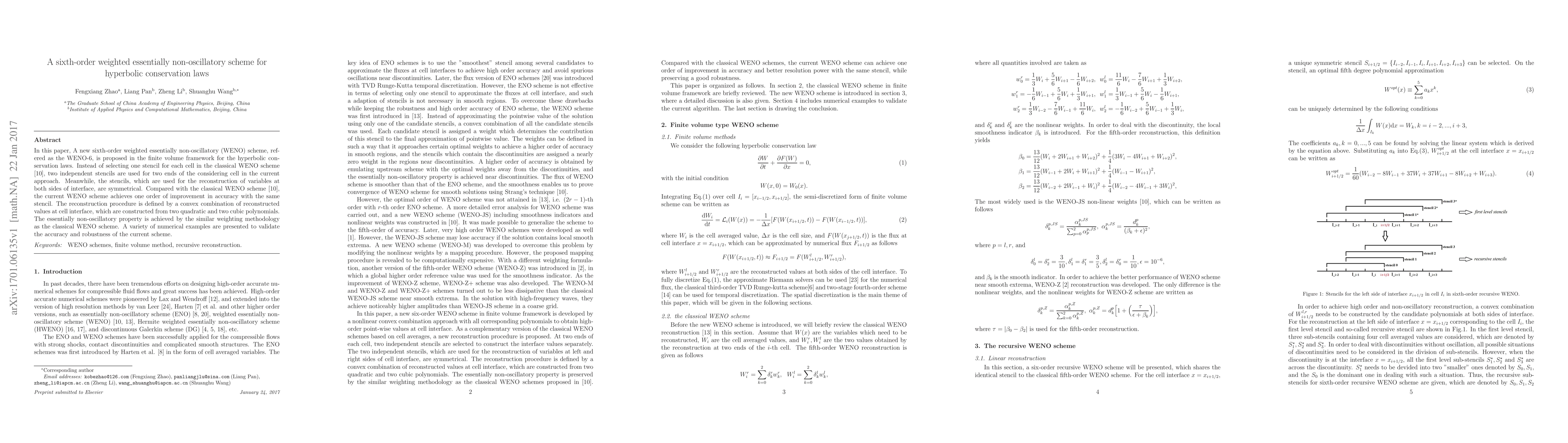 This paper proposes a new sixth-order weighted essentially non-oscillatory (WENO-6) scheme in a finite volume framework for hyperbolic conservation laws, using two symmetrical stencils to achieve one order of accuracy improvement over the classical WENO scheme. Numerical examples validate its accuracy and robustness.
