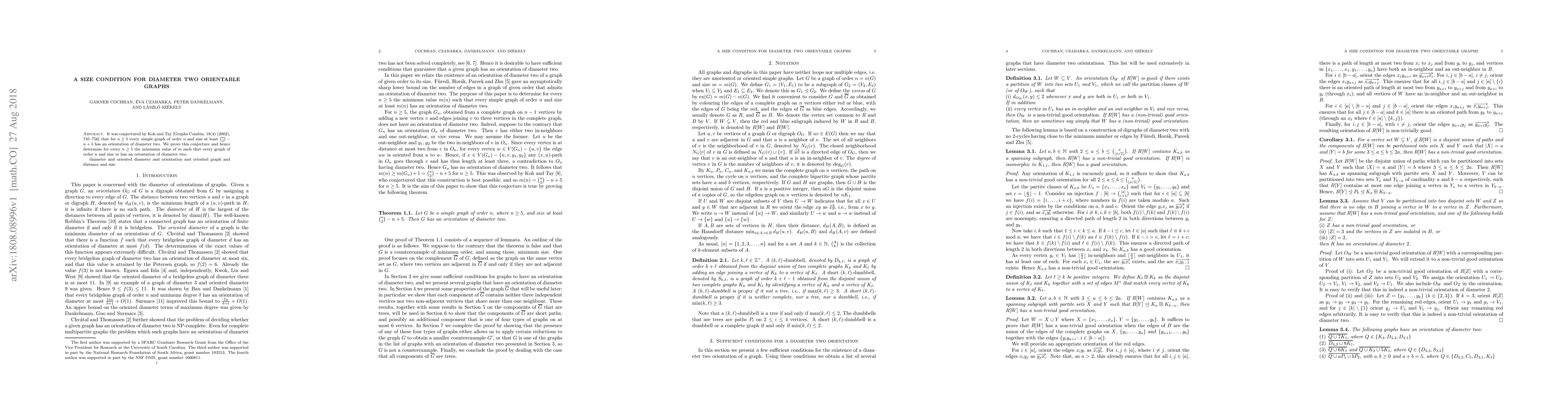 It was conjectured by Koh and Tay [Graphs Combin. 18(4) (2002), 745--756] that for $n\geq 5$ every simple graph of order $n$ and size at least $\binom{n}{2}-n+5$ has an orientation of diameter two. We prove this conjecture and hence determine for every $n\geq 5$ the minimum value of $m$ such that every graph of order $n$ and size $m$ has an orientation of diameter two.