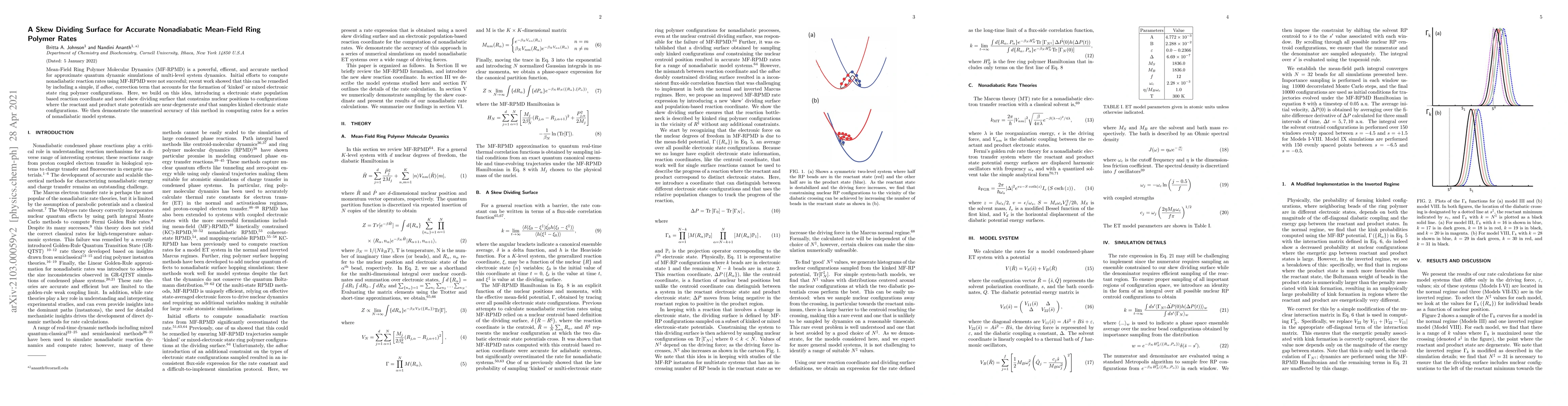 This paper introduces a novel skew dividing surface and electronic state population-based reaction coordinate to improve the accuracy of nonadiabatic reaction rates in Mean-Field Ring Polymer Molecular Dynamics simulations. The method effectively samples mixed electronic state configurations and demonstrates numerical accuracy for various nonadiabatic model systems.