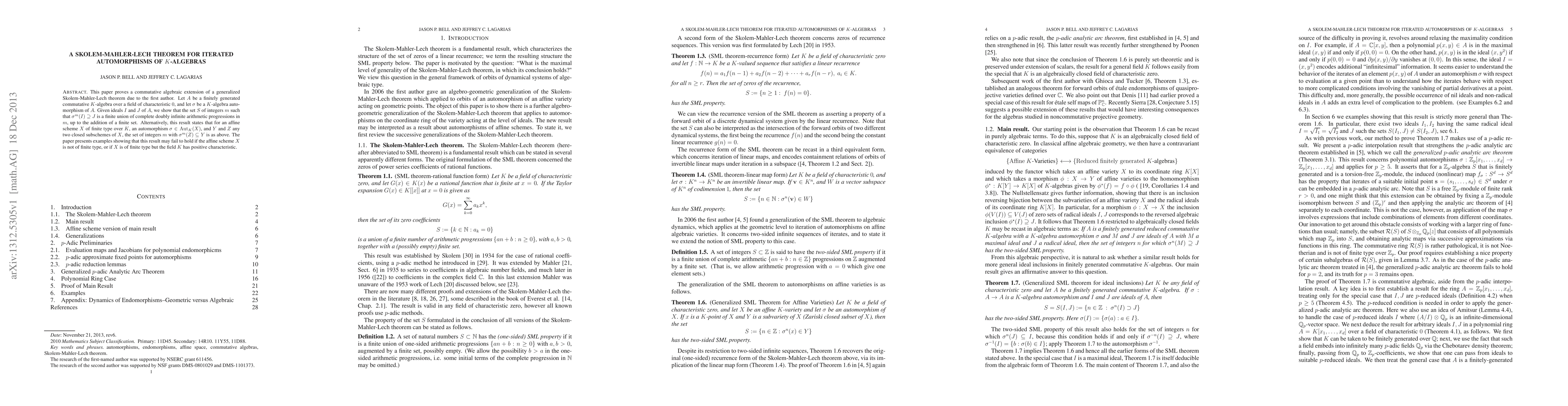The paper presents a generalized Skolem-Mahler-Lech theorem for iterated automorphisms of $K$-algebras, providing a detailed proof and examples illustrating its applicability and limitations.