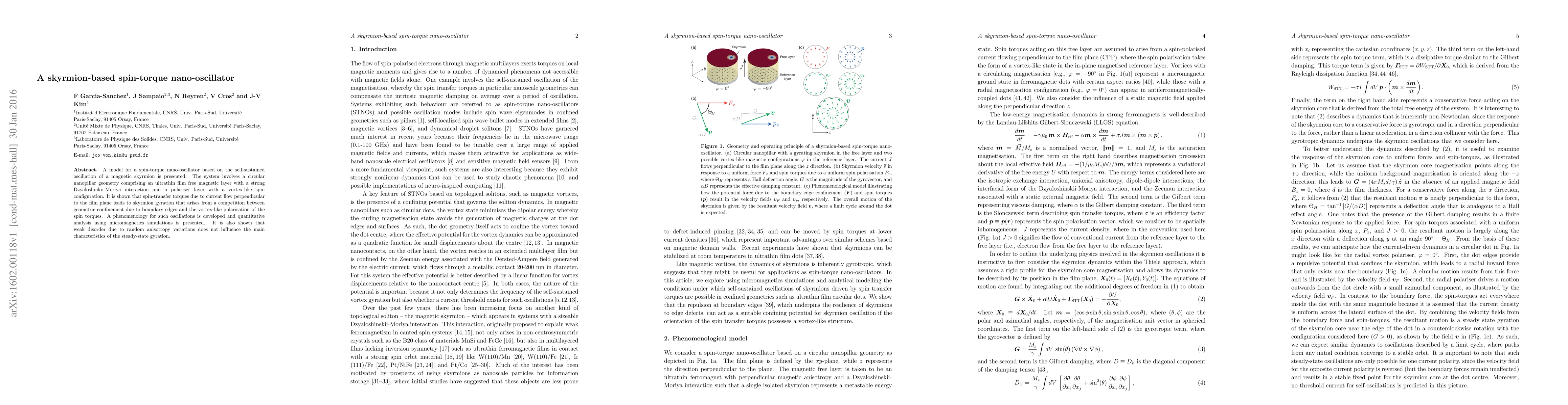 The paper introduces a theoretical model and supports it with micromagnetics simulations, demonstrating self-sustained skyrmion gyration in a nano-oscillator setup, which could pave the way for novel neuromorphic computing applications.