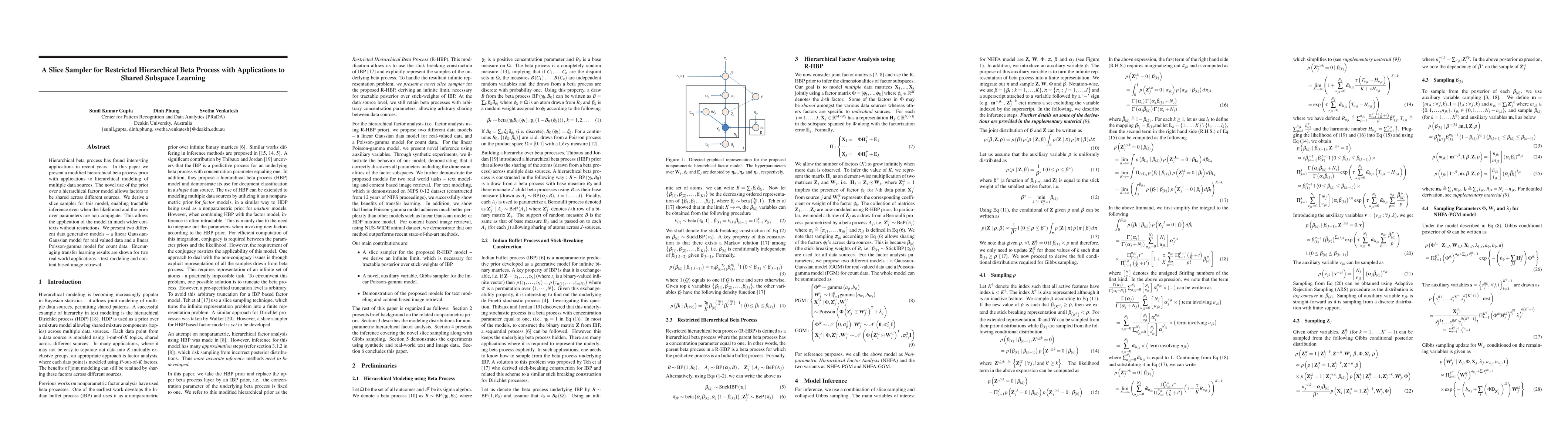 A novel hierarchical beta process prior is introduced for shared subspace learning across multiple data sources, enabling tractable inference with a slice sampler. This approach allows wider applications without restrictions, demonstrated in text modeling and content-based image retrieval.