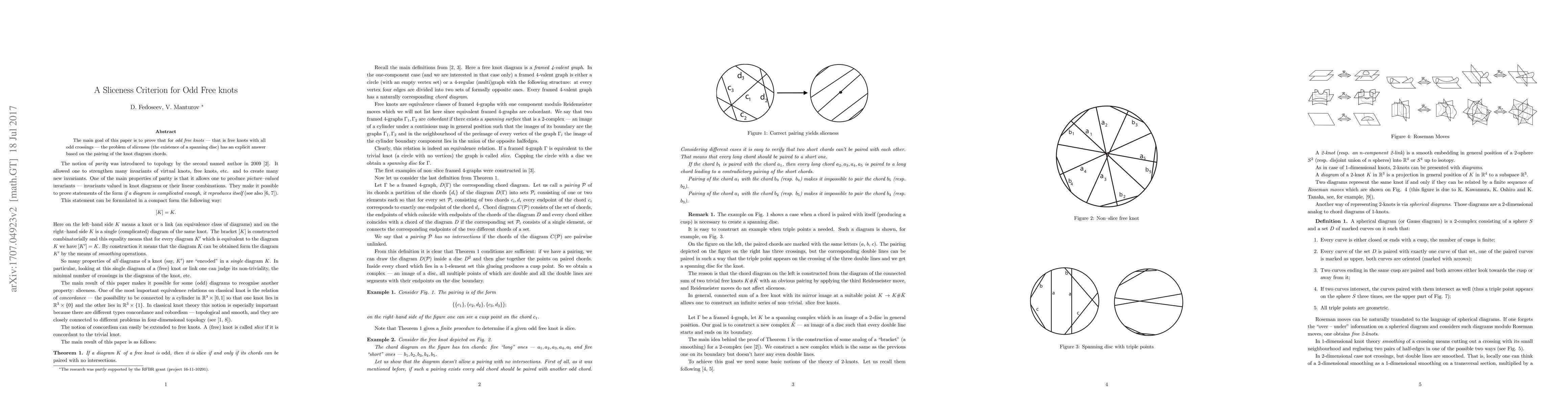 The main goal of this paper is to prove that for odd free knots - that is free knots with all odd crossings - the problem of sliceness (the existence of a spanning disc) has an explicit answer based on the pairing of the knot diagram chords.