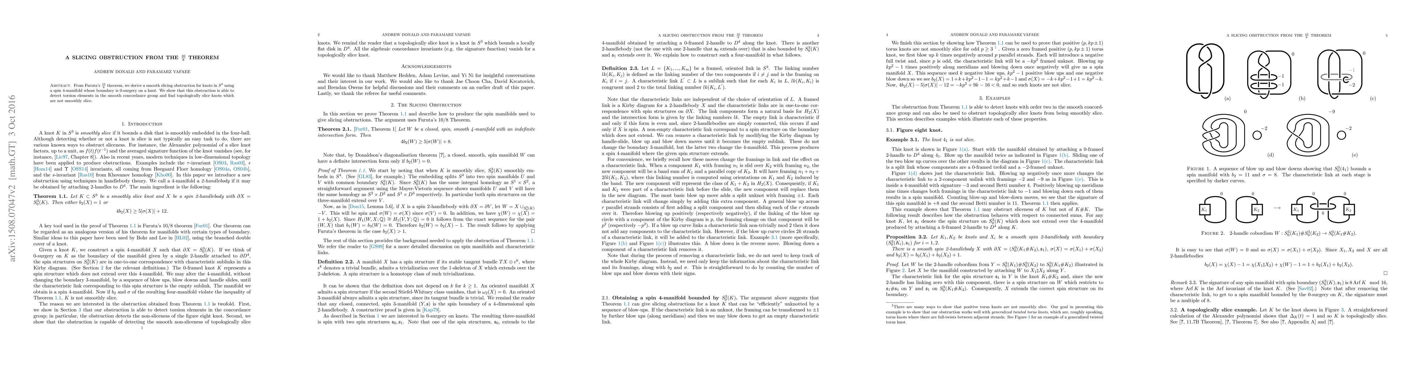 This paper derives a smooth slicing obstruction for knots in $S^3$ from Furuta's $\frac{10}{8}$ theorem, showing it can detect torsion elements in the smooth concordance group and identifies topologically slice knots that are not smoothly slice.