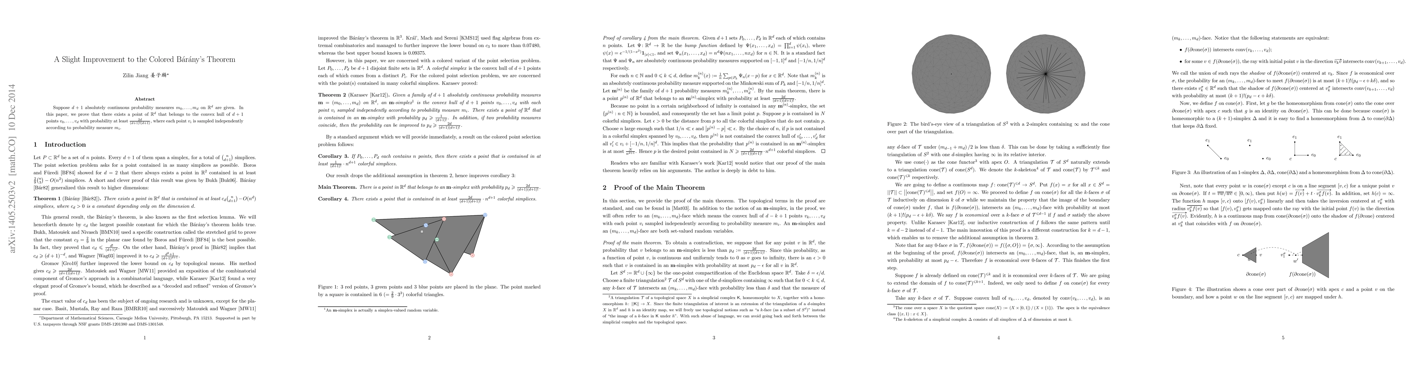 Suppose $d+1$ absolutely continuous probability measures $m_0, \ldots, m_d$ on $\mathbb{R}^d$ are given. In this paper, we prove that there exists a point of $\mathbb{R}^d$ that belongs to the convex hull of $d+1$ points $v_0, \ldots, v_d$ with probability at least $\frac{2d}{(d+1)!(d+1)}$, where each point $v_i$ is sampled independently according to probability measure $m_i$.