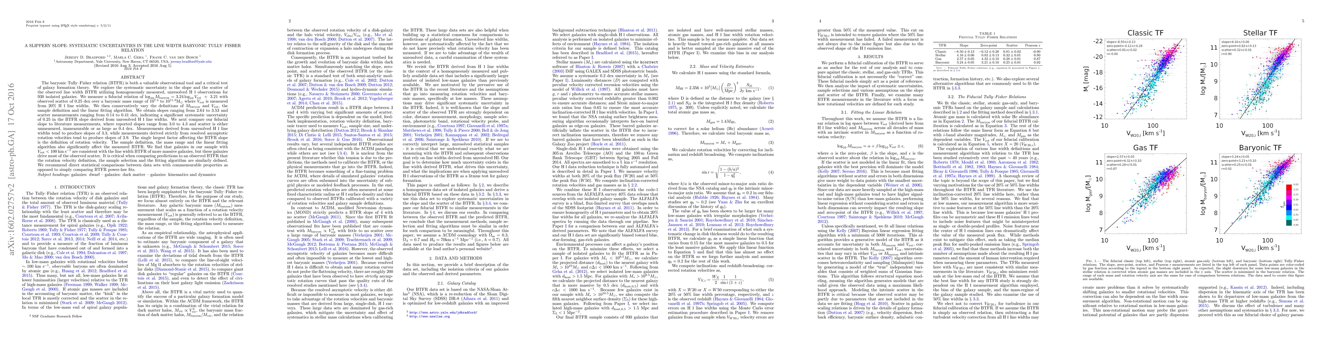 The baryonic Tully-Fisher relation (BTFR) is a valuable observational tool and a critical test of galaxy formation theory. We explore the systematic uncertainty in the slope and the scatter of the observed line width BTFR utilizing homogeneously measured, unresolved HI observations for 930 isolated galaxies. We measure a fiducial relation of $\log_{10}{M_{\rm baryon}} = 3.24\log_{10}{V_{\rm rot}}+3.21$ with observed scatter of 0.25 dex with $10^{7.4} < M_{\rm baryon} < 10^{11.3}M_{\odot}$ where $V_{\rm rot}$ is measured from 20\% HI line widths. We vary the definitions of $M_{\rm baryon}$ and $V_{\rm rot}$, the sample selection, and the linear fitting algorithm. We obtain slopes ranging from 2.64 to 3.53 and scatter measurements ranging from 0.14 to 0.41~dex, indicating a systematic uncertainty of 0.25 in the BTFR slope derived from unresolved HI line widths. We compare our fiducial slope to literature measurements, where reported slopes range from 3.0 to 4.3 and scatter is either unmeasured, immeasurable or as large as 0.4~dex. Measurements derived from unresolved HI line widths tend to produce slopes of 3.3, while measurements derived from asymptotic rotation curves tend to produce slopes of 3.9. The largest factor affecting the BTFR slope is the definition of $V_{\rm rot}$. The sample definition, the mass range, and the linear fitting algorithm also significantly affect the measured BTFR. We find that galaxies in our sample with $V_{\rm rot} < 100~\rm{km~s^{-1}}$ are consistent with the line width BTFR of more massive galaxies, but these galaxies drive most of the observed scatter. It is critical when comparing predictions to an observed BTFR that the $V_{\rm rot}$ definition, the sample selection and the fitting algorithm are similarly defined. We recommend direct statistical comparisons between data sets with commensurable properties as opposed to comparing BTFR power-law fits.