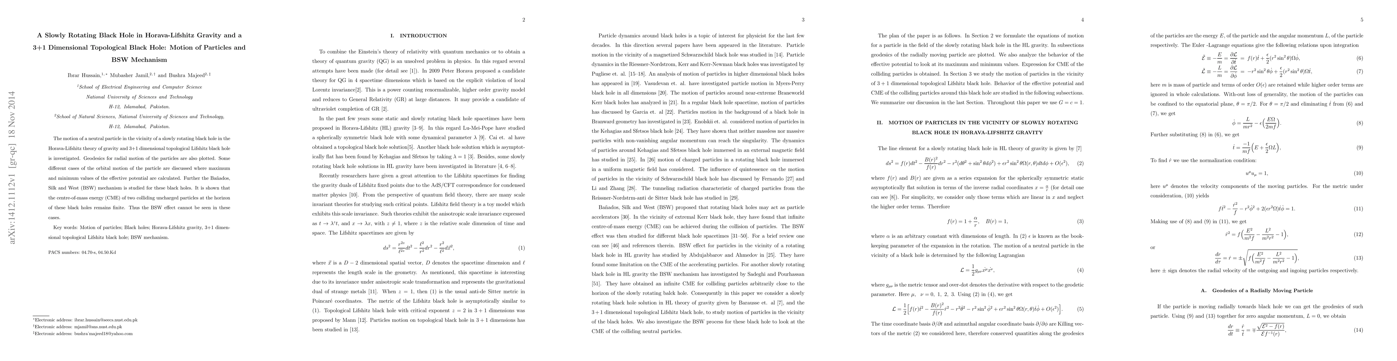 This paper investigates the motion of neutral particles around slowly rotating black holes in Horava-Lifshitz gravity and 3+1 dimensional topological Lifshitz black holes, analyzing their geodesics and effective potentials. The study concludes that the BSW mechanism does not apply, as the center-of-mass energy of colliding particles remains finite at the event horizon.