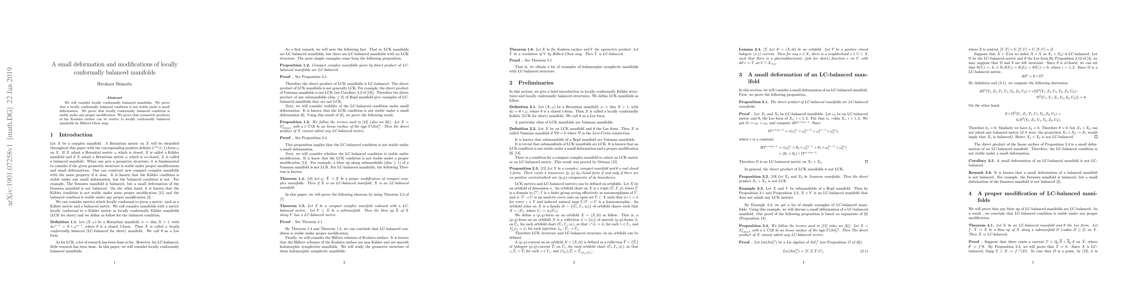 Summary: This paper investigates locally conformally balanced manifolds, demonstrating that the condition is not stable under small deformations but is stable under proper modifications. It also shows that symmetric products of the Kodaira surface can be resolved to locally conformally balanced manifolds via the Hilbert-Chow map.