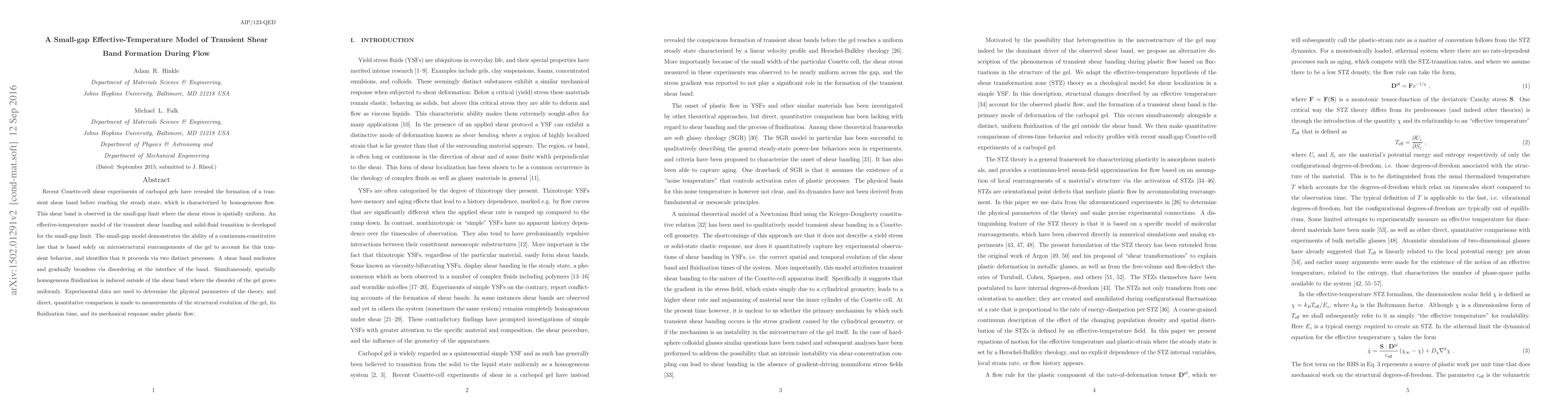 Researchers developed a model explaining how carbopol gels form transient shear bands before reaching steady state in small-gap limits. The study shows that the process involves two distinct mechanisms: disordering at the band interface and spatially homogeneous fluidization outside the band.