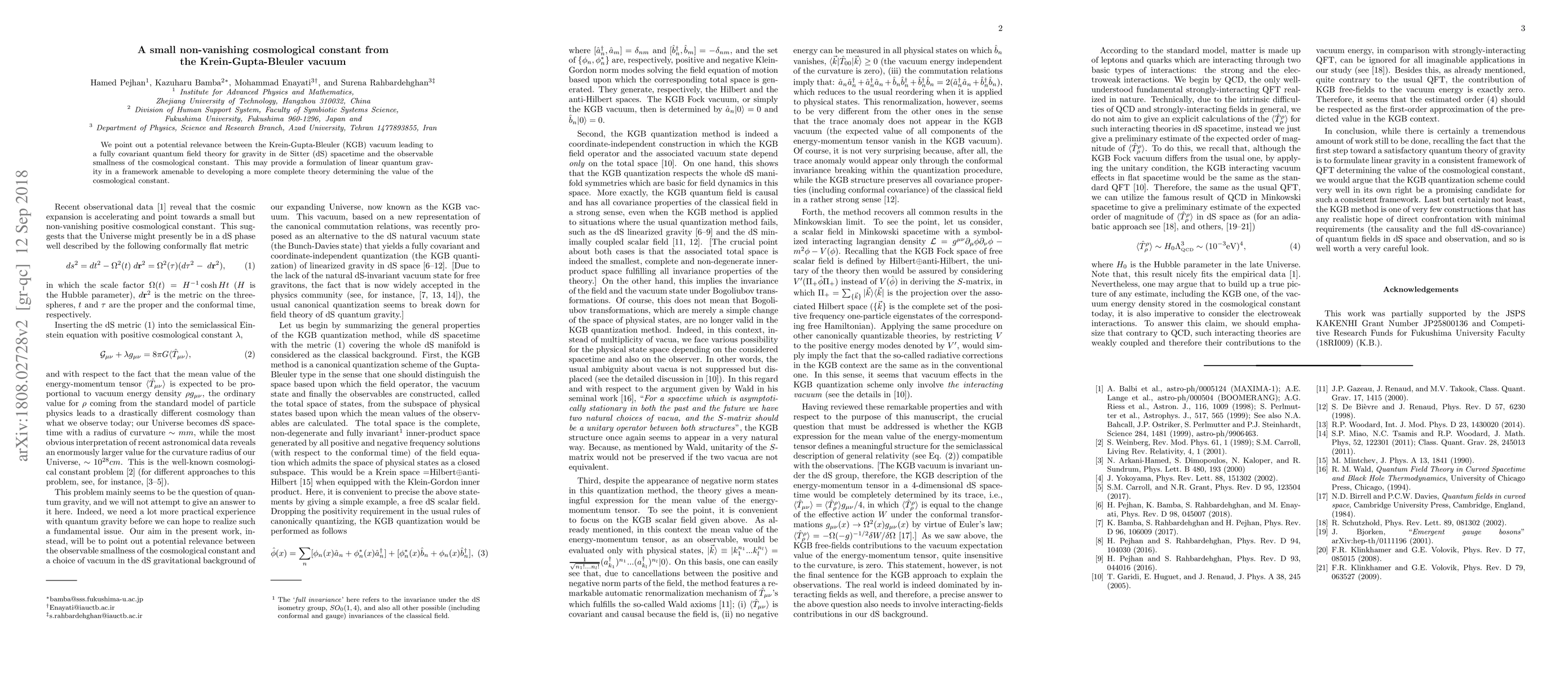 This paper explores the connection between the Krein-Gupta-Bleuler vacuum and a small non-vanishing cosmological constant, suggesting it could lead to a fully covariant quantum field theory for gravity in de Sitter spacetime, potentially determining the value of the cosmological constant.