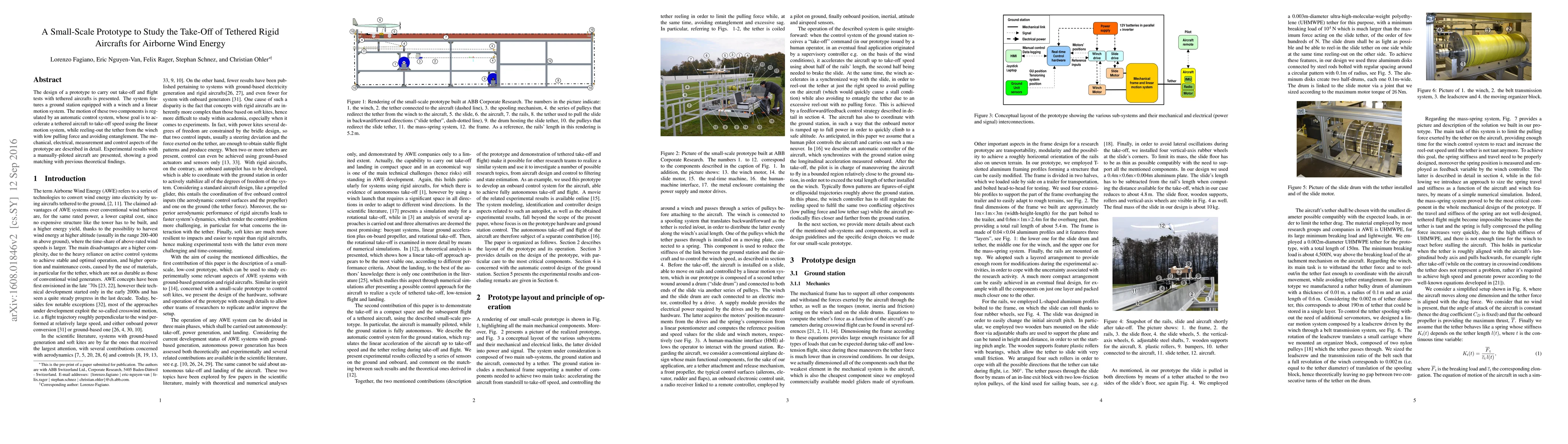 This paper details a small-scale prototype for testing tethered rigid aircraft take-off in airborne wind energy applications. The prototype includes a ground station with a winch and linear motion system, controlled to accelerate the aircraft while minimizing tether force and avoiding entanglement. Experimental results show good alignment with theoretical predictions.