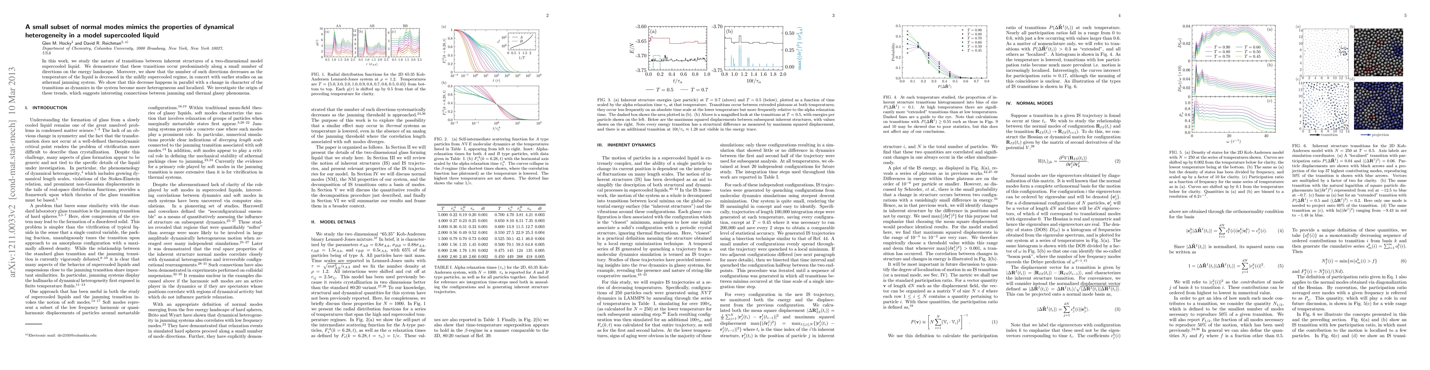 In this work, we study the nature of transitions between inherent structures of a two-dimensional model supercooled liquid. We demonstrate that these transitions occur predominately along a small number of directions on the energy landscape. Moreover, we show that the number of such directions decreases as the temperature of the liquid is decreased in the mildly supercooled regime, in concert with earlier studies on an athermal jamming system. We show that this decrease happens in parallel with a change in character of the transitions as dynamics in the system become more heterogeneous and localized. We investigate the origin of these trends, which suggests interesting connections between jamming and thermal glassy phenomena.