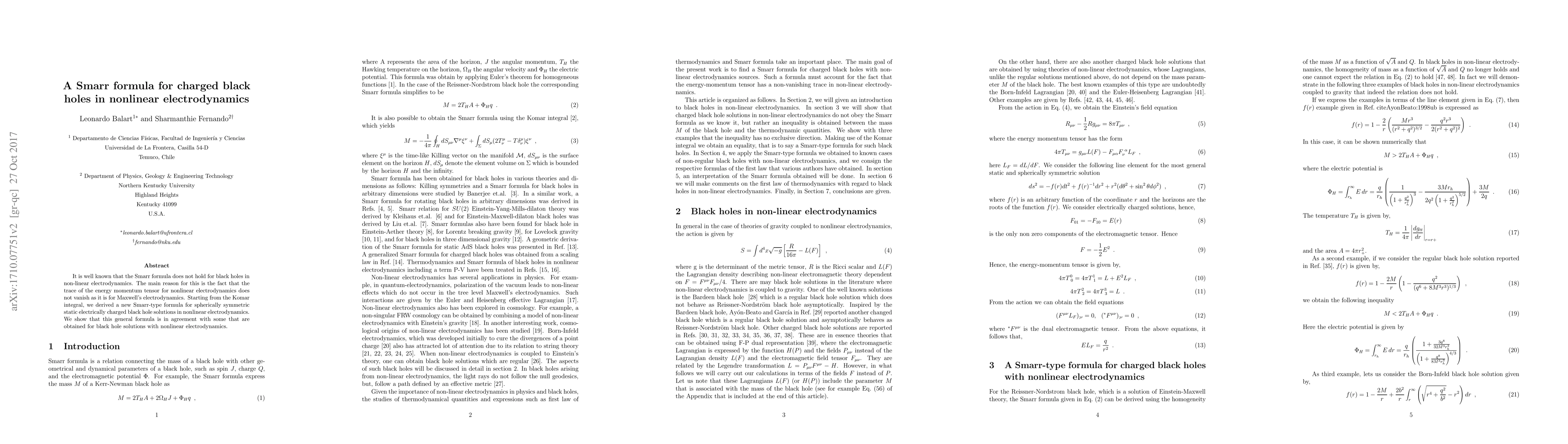 This paper derives a new Smarr formula for charged black holes in nonlinear electrodynamics, showing it aligns with known results for specific solutions, addressing the non-vanishing trace of the energy-momentum tensor inherent in nonlinear electrodynamics.
