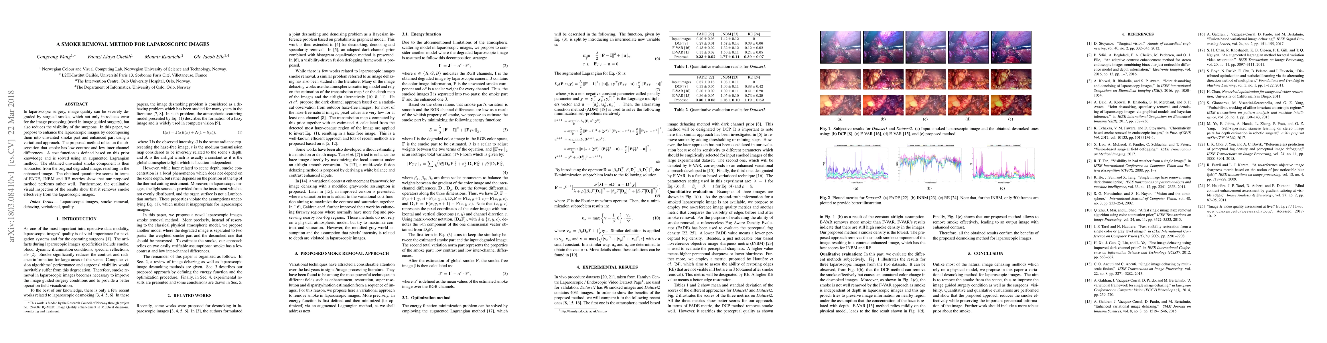 In laparoscopic surgery, image quality can be severely degraded by surgical smoke, which not only introduces error for the image processing (used in image guided surgery), but also reduces the visibility of the surgeons. In this paper, we propose to enhance the laparoscopic images by decomposing them into unwanted smoke part and enhanced part using a variational approach. The proposed method relies on the observation that smoke has low contrast and low inter-channel differences. A cost function is defined based on this prior knowledge and is solved using an augmented Lagrangian method. The obtained unwanted smoke component is then subtracted from the original degraded image, resulting in the enhanced image. The obtained quantitative scores in terms of FADE, JNBM and RE metrics show that our proposed method performs rather well. Furthermore, the qualitative visual inspection of the results show that it removes smoke effectively from the laparoscopic images.