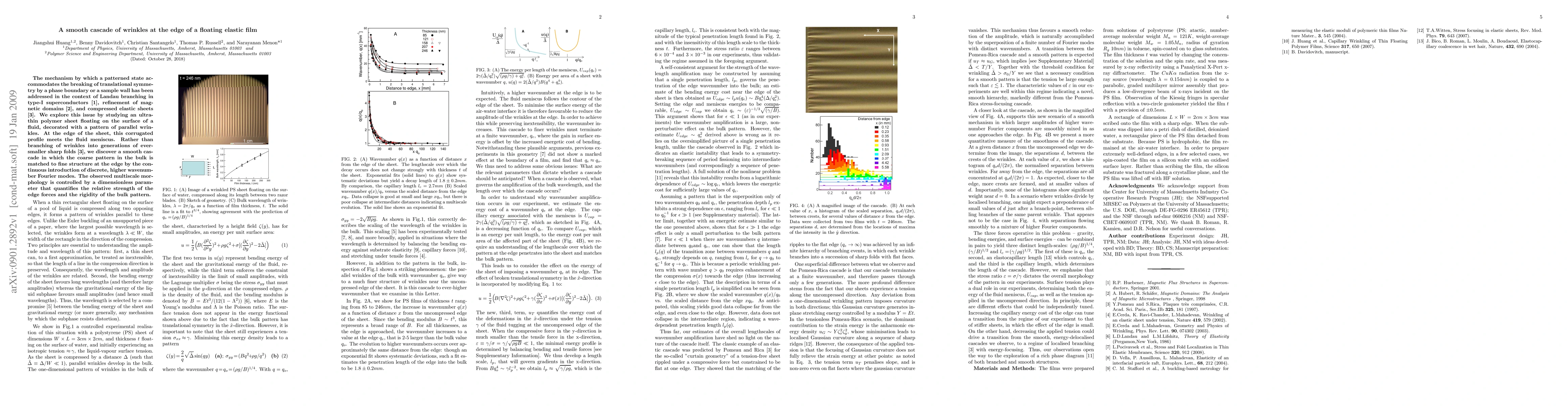 The mechanism by which a patterned state accommodates the breaking of translational symmetry by a phase boundary or a sample wall has been addressed in the context of Landau branching in type-I superconductors, refinement of magnetic domains, and compressed elastic sheets. We explore this issue by studying an ultrathin polymer sheet floating on the surface of a fluid, decorated with a pattern of parallel wrinkles. At the edge of the sheet, this corrugated profile meets the fluid meniscus. Rather than branching of wrinkles into generations of ever-smaller sharp folds, we discover a smooth cascade in which the coarse pattern in the bulk is matched to fine structure at the edge by the continuous introduction of discrete, higher wavenumber Fourier modes. The observed multiscale morphology is controlled by a dimensionless parameter that quantifies the relative strength of the edge forces and the rigidity of the bulk pattern.