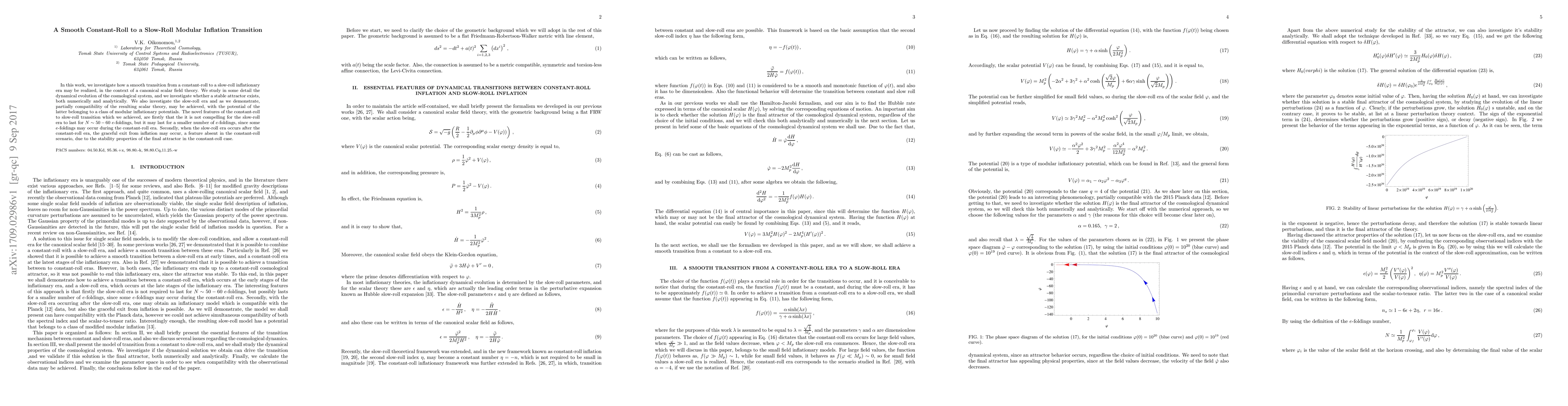 In this work, we investigate how a smooth transition from a constant-roll to a slow-roll inflationary era may be realized, in the context of a canonical scalar field theory. We study in some detail the dynamical evolution of the cosmological system, and we investigate whether a stable attractor exists, both numerically and analytically. We also investigate the slow-roll era and as we demonstrate, partially compatibility of the resulting scalar theory, may be achieved, with the potential of the latter belonging to a class of modular inflationary potentials. The novel features of the constant-roll to slow-roll transition which we achieved, are firstly that the it is not compelling for the slow-roll era to last for $N\sim 50-60$ $e$-foldings, but it may last for a smaller number of $e$-foldings, since some $e$-foldings may occur during the constant-roll era. Secondly, when the slow-roll era occurs after the constant-roll era, the graceful exit from inflation may occur, a feature absent in the constant-roll scenario, due to the stability properties of the final attractor in the constant-roll case.