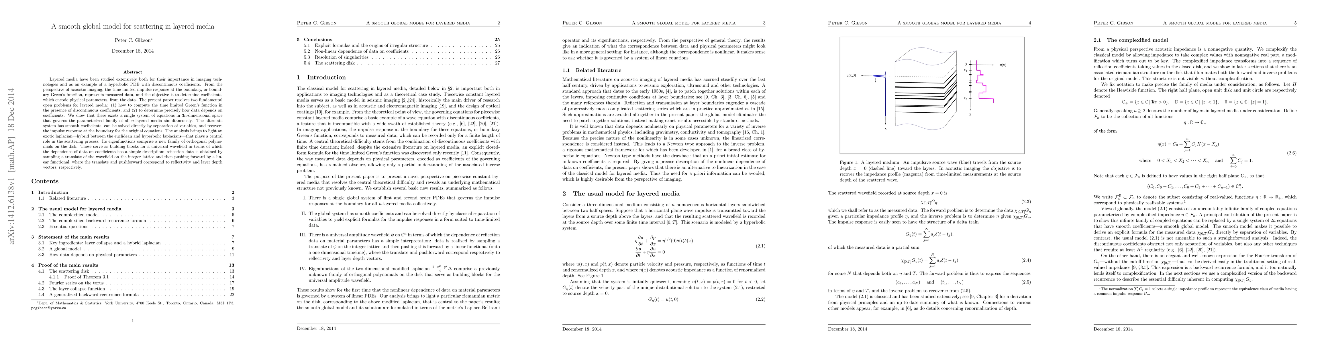 This paper presents a smooth global model for scattering in layered media, solving the challenge of computing the time-limited Green's function with discontinuous coefficients. It introduces a unified system of equations with smooth coefficients that governs all $n$-layered media, revealing a hybrid Laplacian and new orthogonal polynomials that simplify the relationship between data and coefficients.