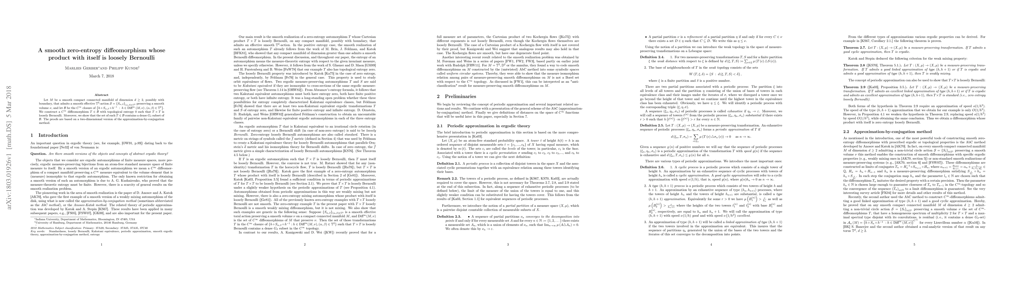 Let $M$ be a smooth compact connected manifold of dimension $d\geq 2$, possibly with boundary, that admits a smooth effective $\mathbb{T}^2$-action $\mathcal{S}=\left\{S_{\alpha,\beta}\right\}_{(\alpha,\beta) \in \mathbb{T}^2}$ preserving a smooth volume $\nu$, and let $\mathcal{B}$ be the $C^{\infty}$ closure of $\left\{h \circ S_{\alpha,\beta} \circ h^{-1} \;:\;h \in \text{Diff}^{\infty}\left(M,\nu\right), (\alpha,\beta) \in \mathbb{T}^2\right\}$. We construct a $C^{\infty}$ diffeomorphism $T \in \mathcal{B}$ with topological entropy $0$ such that $T \times T$ is loosely Bernoulli. Moreover, we show that the set of such $T \in \mathcal{B}$ contains a dense $G_{\delta}$ subset of $\mathcal{B}$. The proofs are based on a two-dimensional version of the approximation-by-conjugation method.
