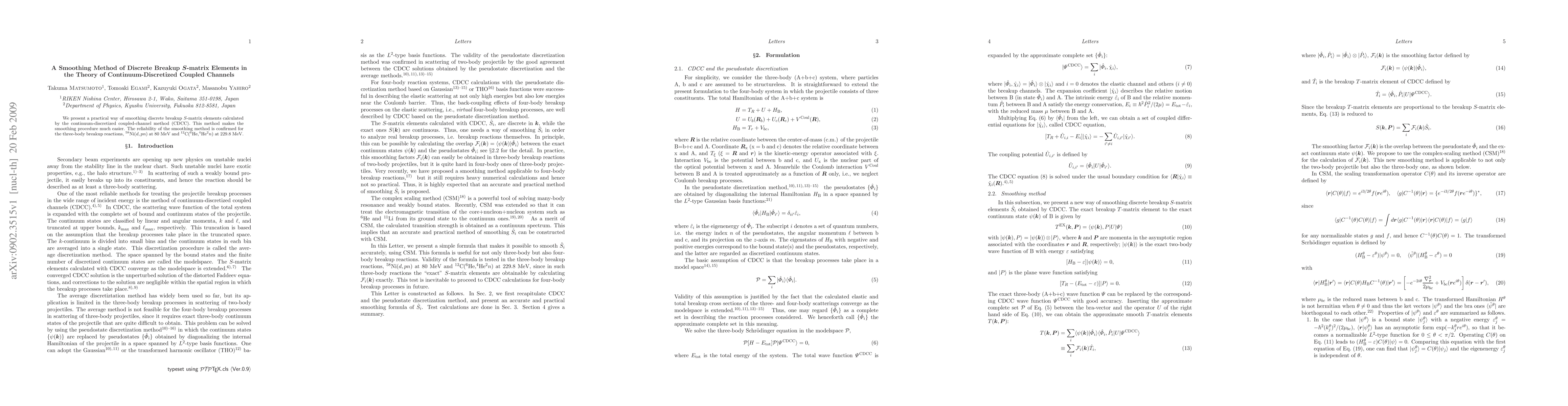 We present a practical way of smoothing discrete breakup S-matrix elements calculated by the continuum-discretized coupled-channel method (CDCC). This method makes the smoothing procedure much easier. The reliability of the smoothing method is confirmed for the three-body breakup reactions, 58Ni(d,pn) at 80 MeV and 12C(6He,4He2n) at 229.8 MeV.